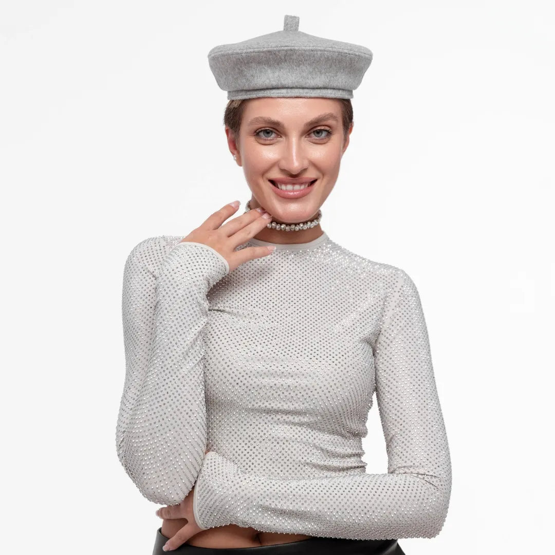 Берет класичної форми, виконаний з натуральної вовни та кашеміру. Позаду розташована стягуюча резинка, що дозволяє пі...