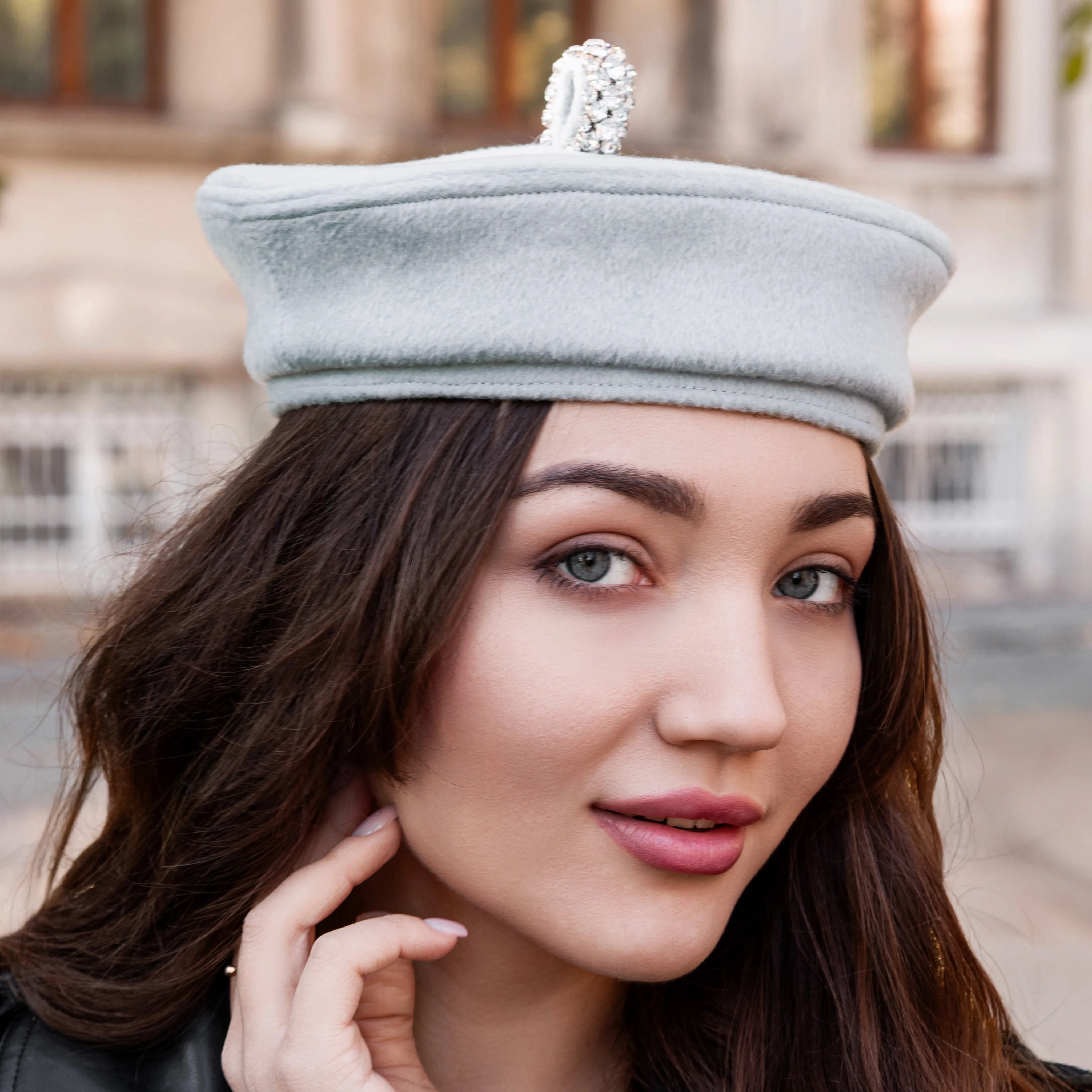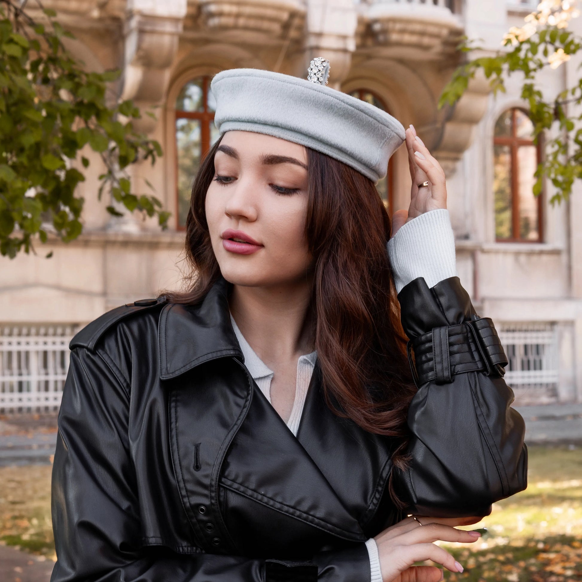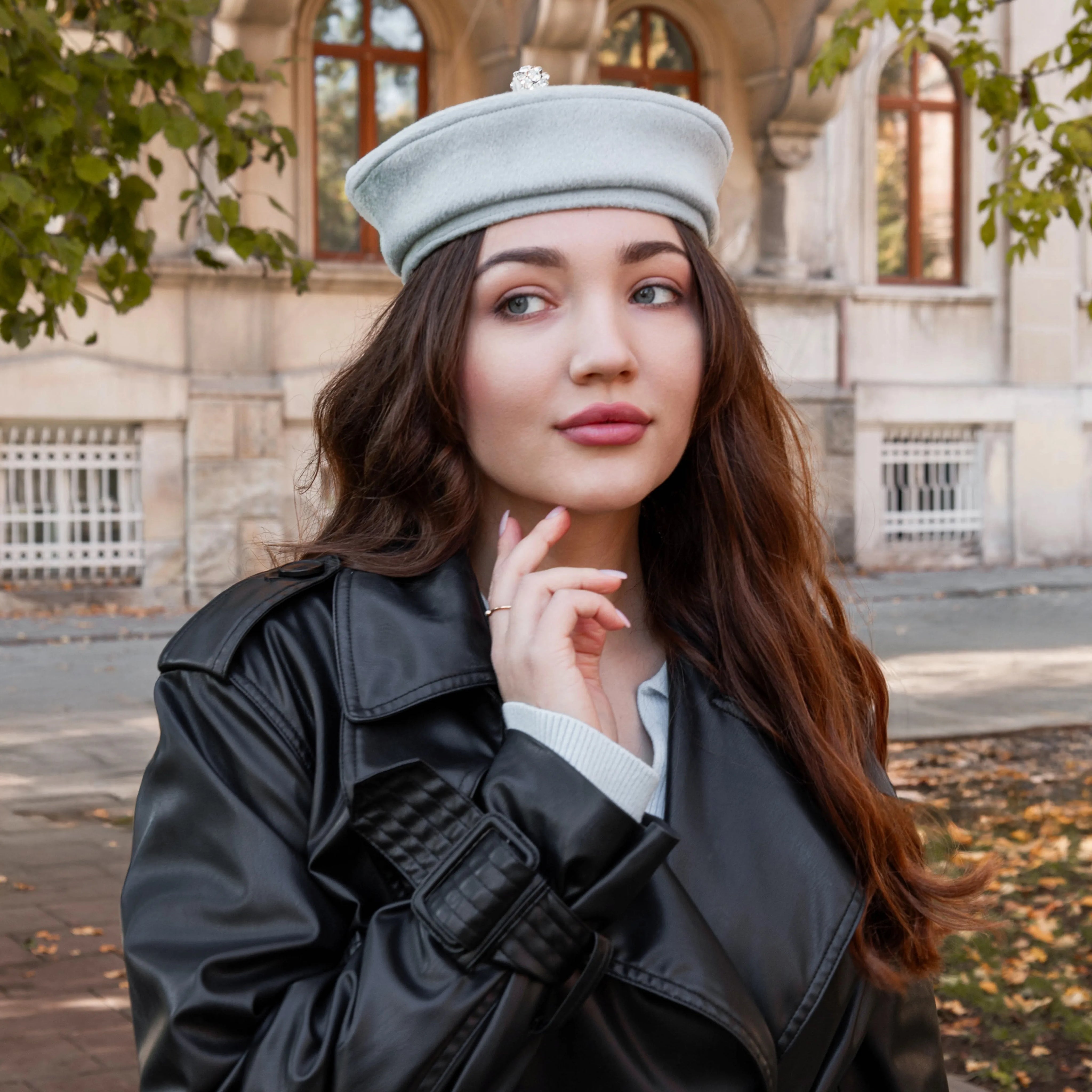 Берет класичної форми, виконаний з натуральної вовни. Позаду розташована стягуюча резинка, що дозволяє підлаштуватись...