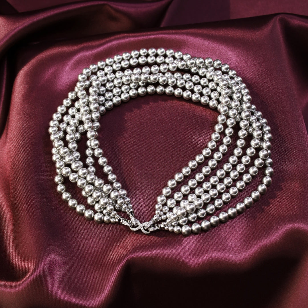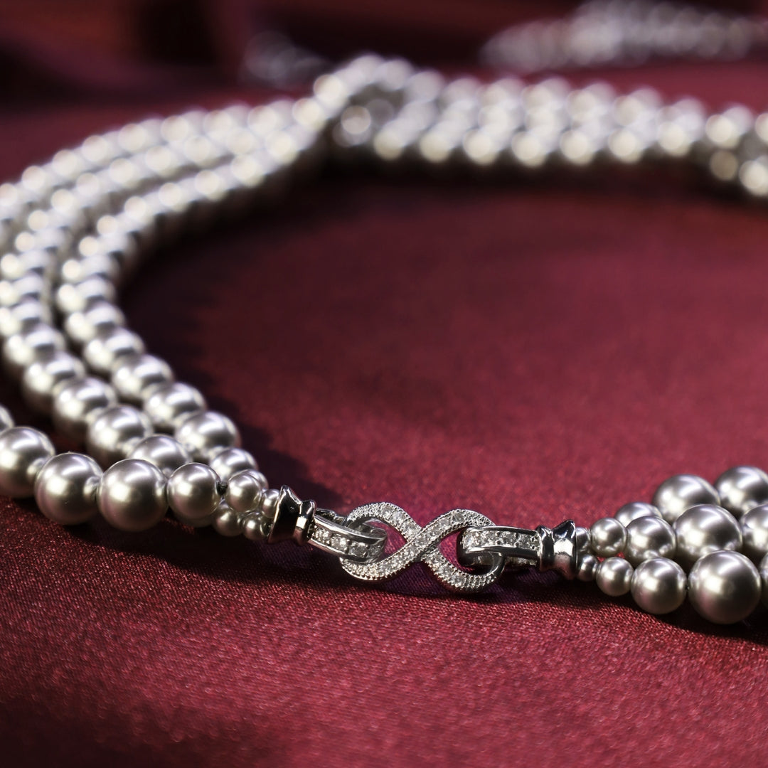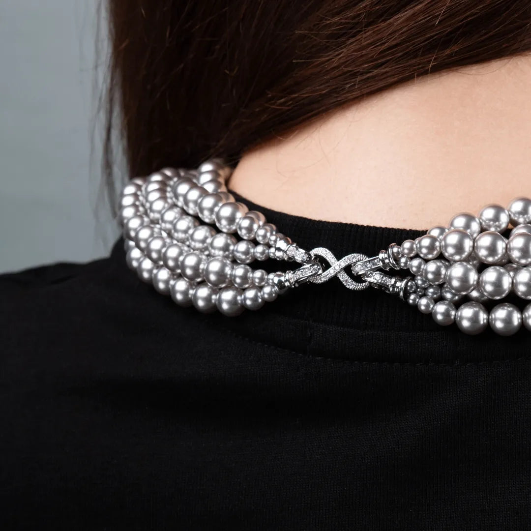 Ми зробили наш бестселер ще кращим! Чокер з 6 рядів керамічних перлин тепер легко перетворюється на 3 ряди: достатньо просто зняти 3 інших. Застібка у формі безкінечності оздоблена стразами та дозволяє легко фіксувати прикрасу без сторонньої допомоги.