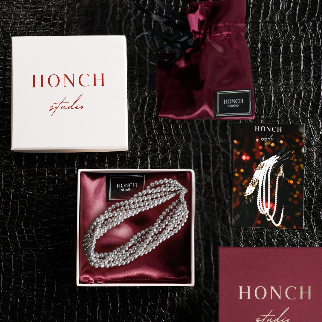 Кожна прикраса з турботою запакована в сатиновий мішечок та коробку з логотипом бренду.