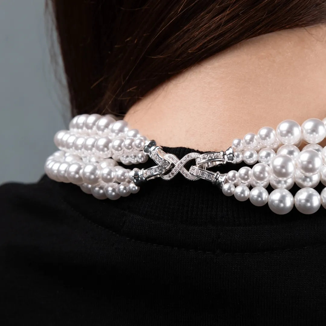 Ми зробили наш бестселер ще кращим! Чокер з 6 рядів керамічних перлин тепер легко перетворюється на 3 ряди: достатньо просто зняти 3 інших. Застібка у формі безкінечності оздоблена стразами та дозволяє легко фіксувати прикрасу без сторонньої допомоги.