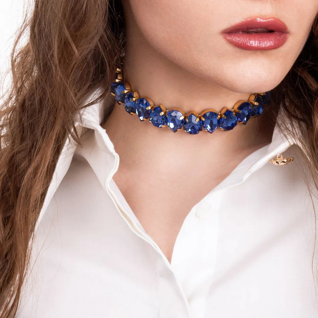 Захоплюючий завершальний штрих вашого аутфіту — чокер Аеліна. Мінімалістичний, але ефектний дизайн у вигляді страз-крапель, нагадує переосмислення епохи відродження на сучасний повсякденний лад. Завдяки сатиновій стрічці, що фіксує аксесуар, ви можете регулювати його довжину.