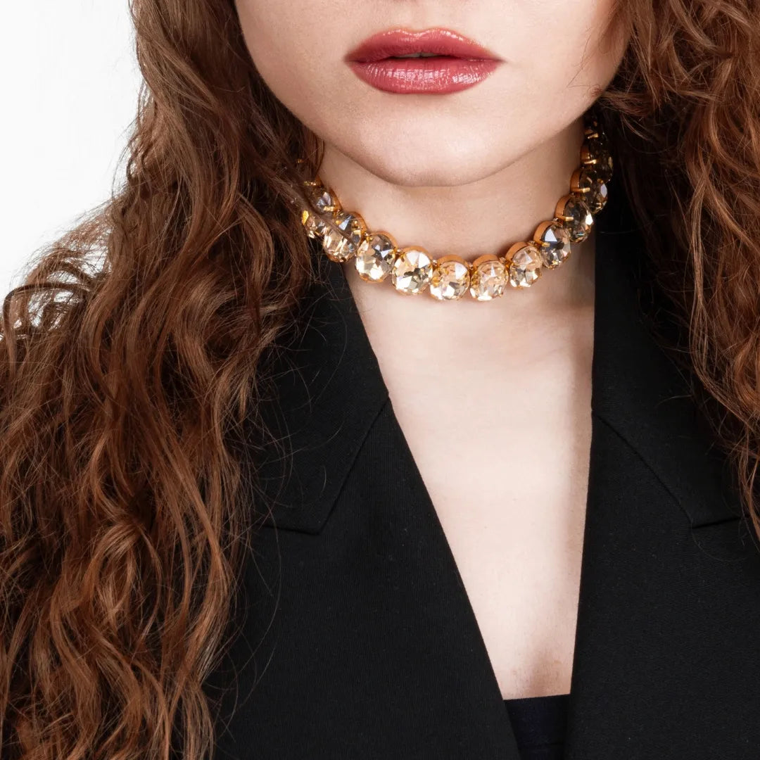 Додайте нотку драматизму з нашим вишуканим чокером Мейв. Масивні кришталеві стрази-овали створюють цікавий сяючий ряд...