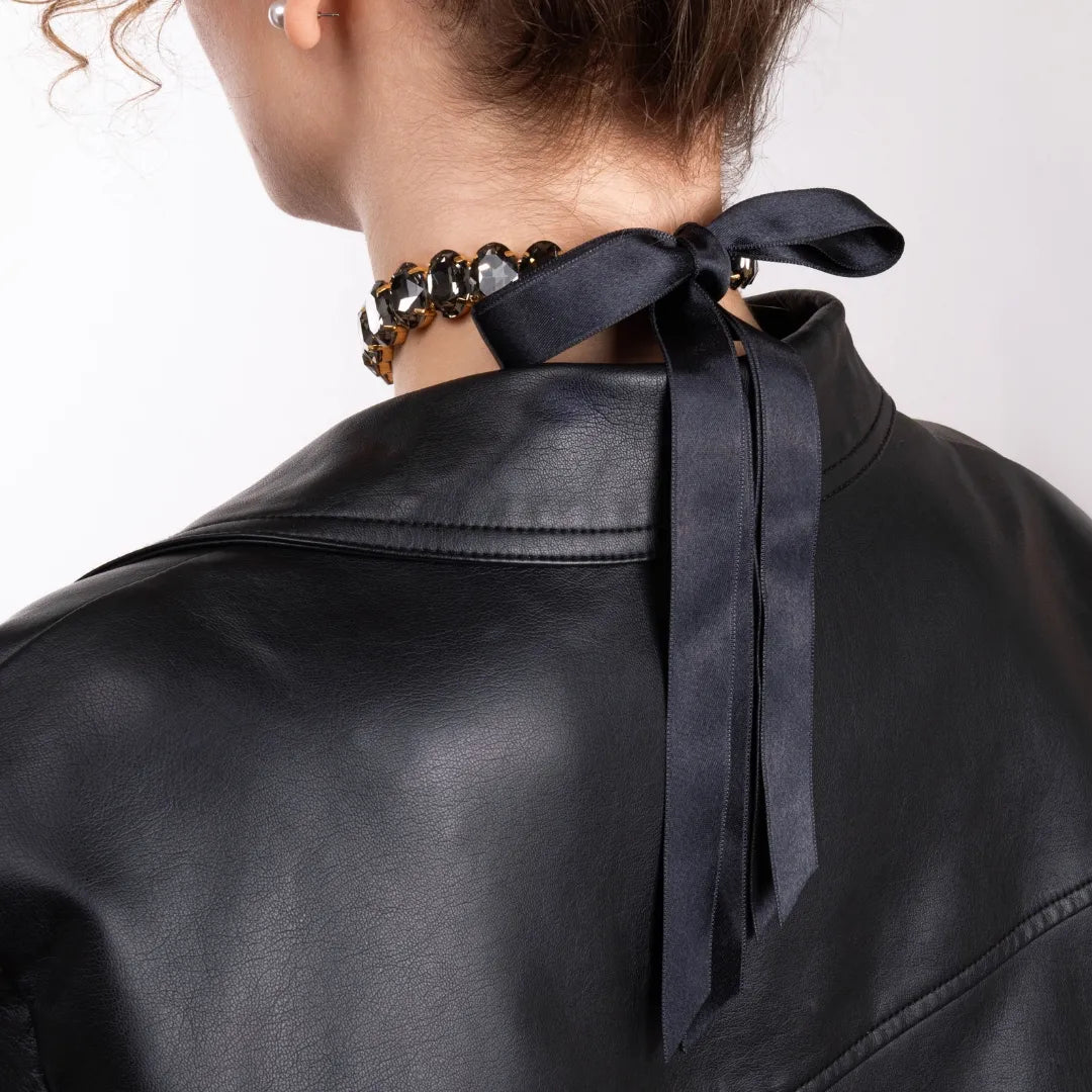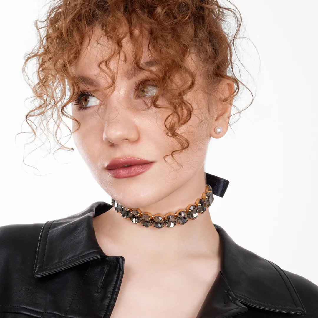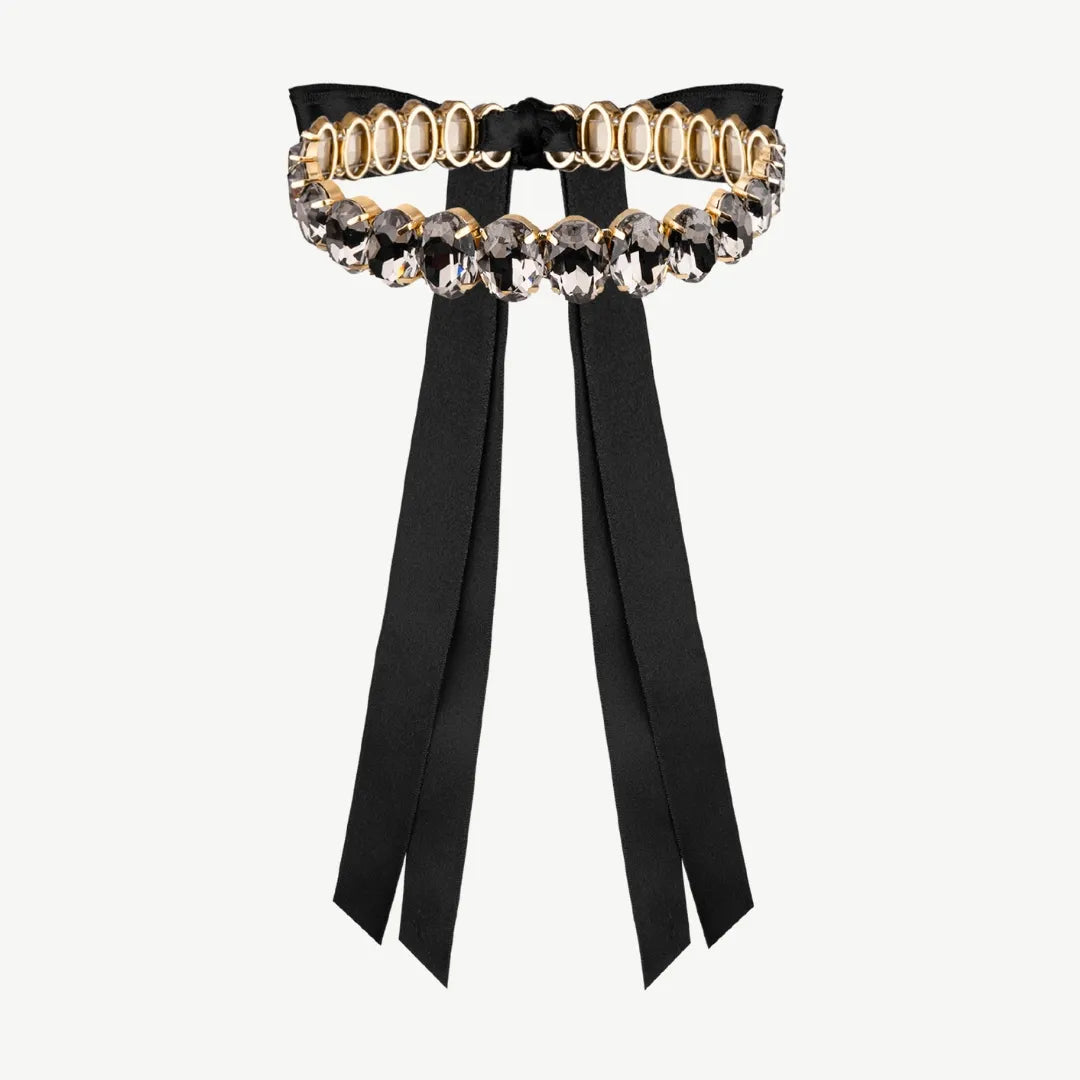 Додайте нотку драматизму з нашим вишуканим чокером Мейв. Масивні кришталеві стрази-овали створюють цікавий сяючий ряд, який відблискує під будь-яким кутом. Ви можете регулювати та фіксувати прикрасу завдяки стрічкам з сатину, які завершують аксесуар.