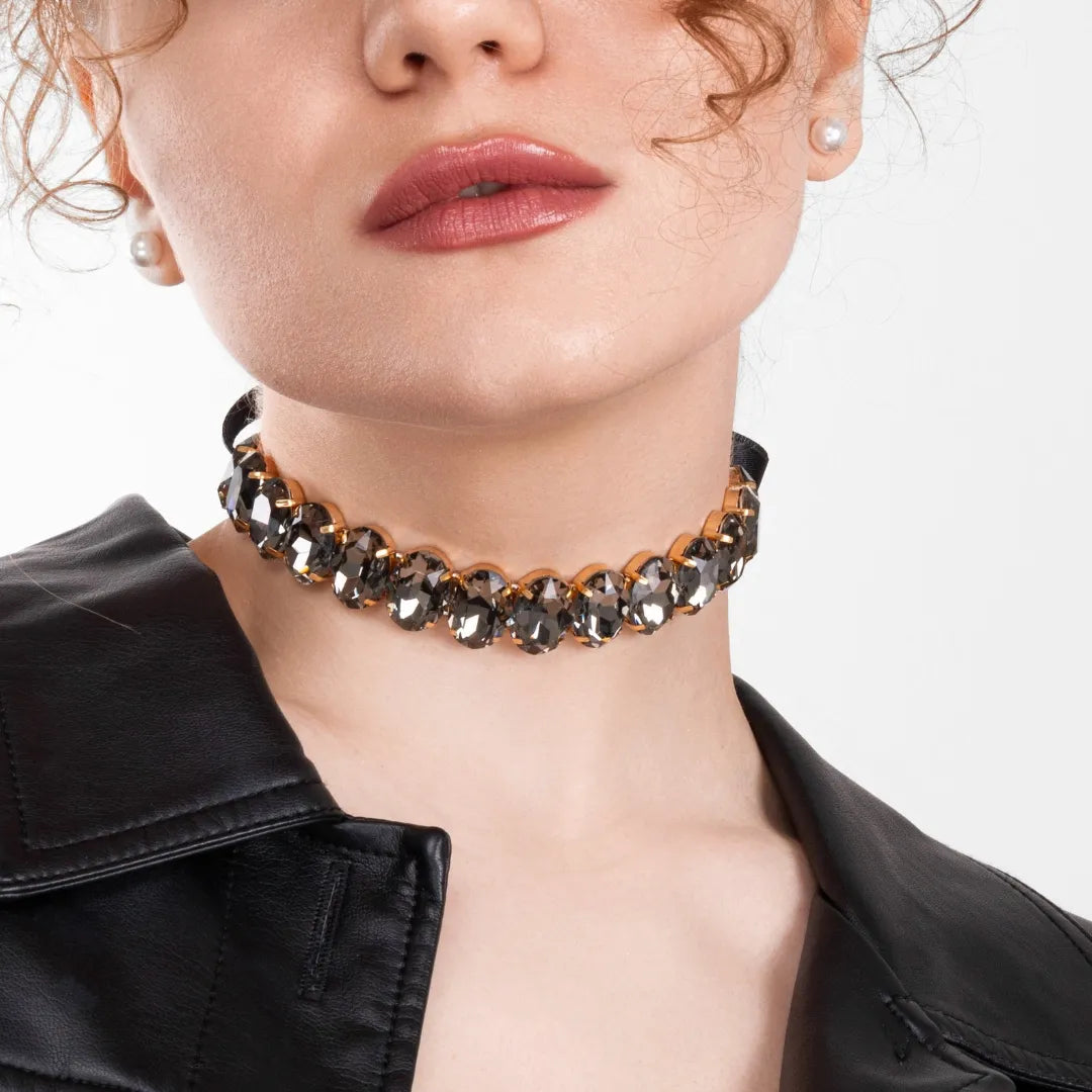 Додайте нотку драматизму з нашим вишуканим чокером Мейв. Масивні кришталеві стрази-овали створюють цікавий сяючий ряд...