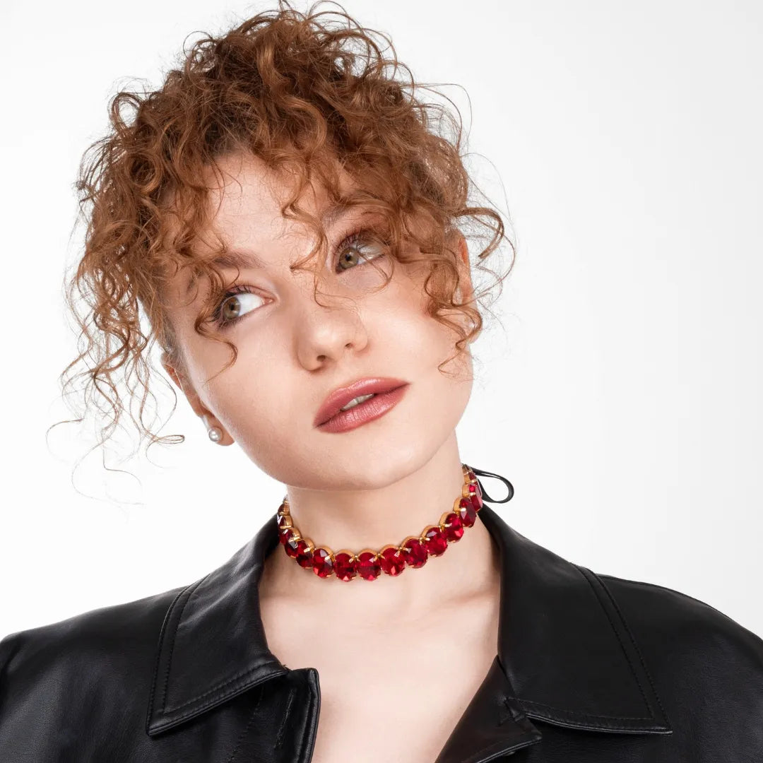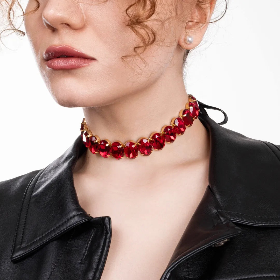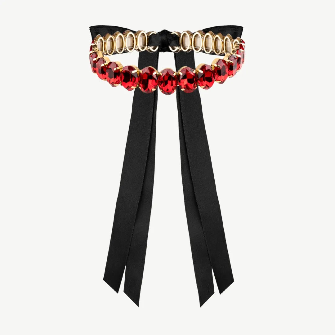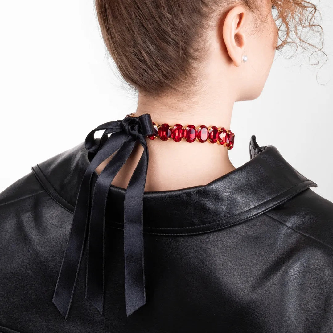 Додайте нотку драматизму з нашим вишуканим чокером Мейв. Масивні кришталеві стрази-овали створюють цікавий сяючий ряд, який відблискує під будь-яким кутом. Ви можете регулювати та фіксувати прикрасу завдяки стрічкам з сатину, які завершують аксесуар.