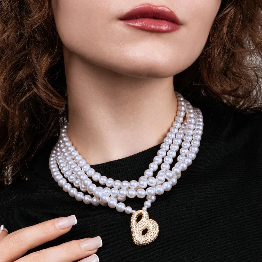 Класичний перлинний чокер отримав новий вигляд у трансформері з 4 рядів перлин з літерою. Підвіска золотистого кольор...