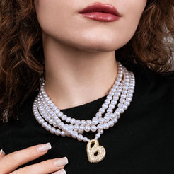 Класичний перлинний чокер отримав новий вигляд у трансформері з 4 рядів перлин з літерою. Підвіска золотистого кольору щедро інкрустована мілкими сяючими стразами, що буквально приковують погляд до вашого аксесуару. Прикраса легко трансформується у чокер з двох рядів перлин без підвіски для більш невимушеного вигляду.