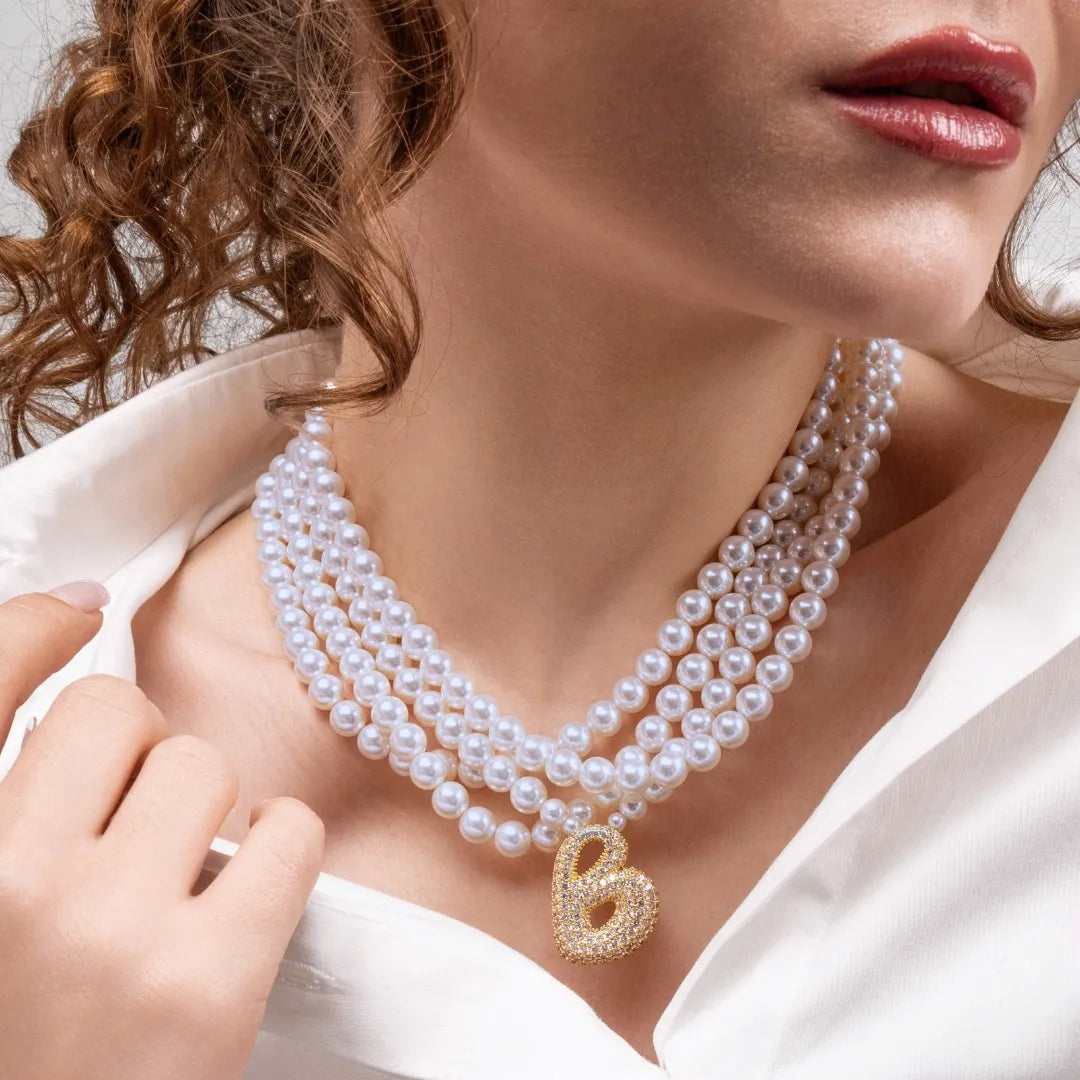 Чокер-трансформер з 4 рядів перлин з літерою білий