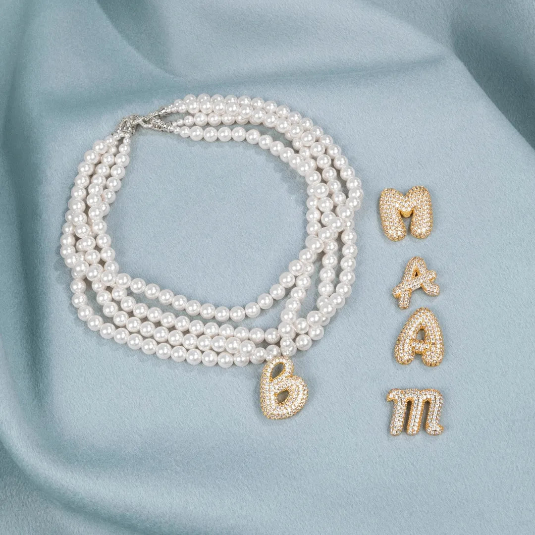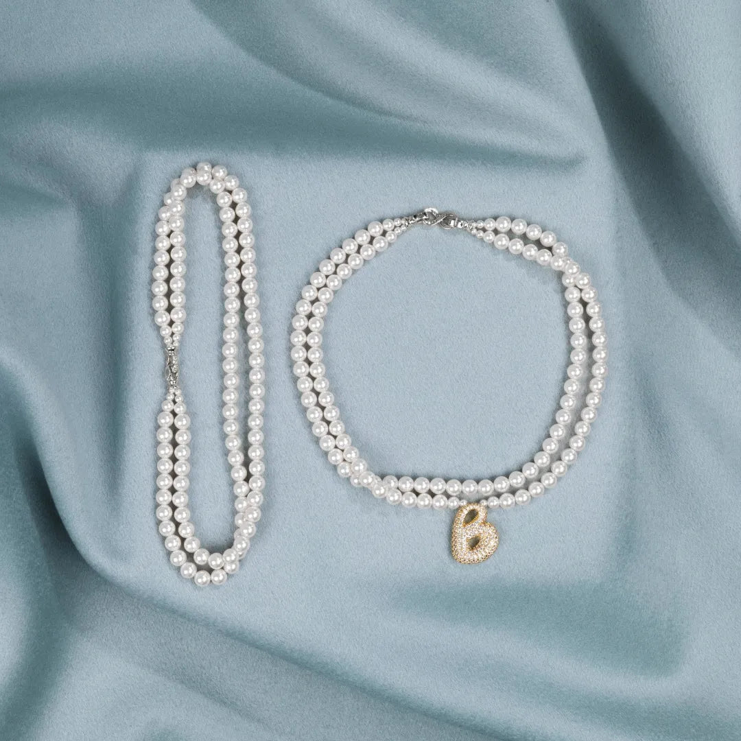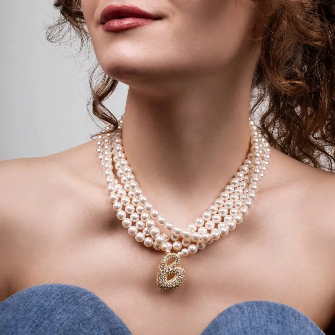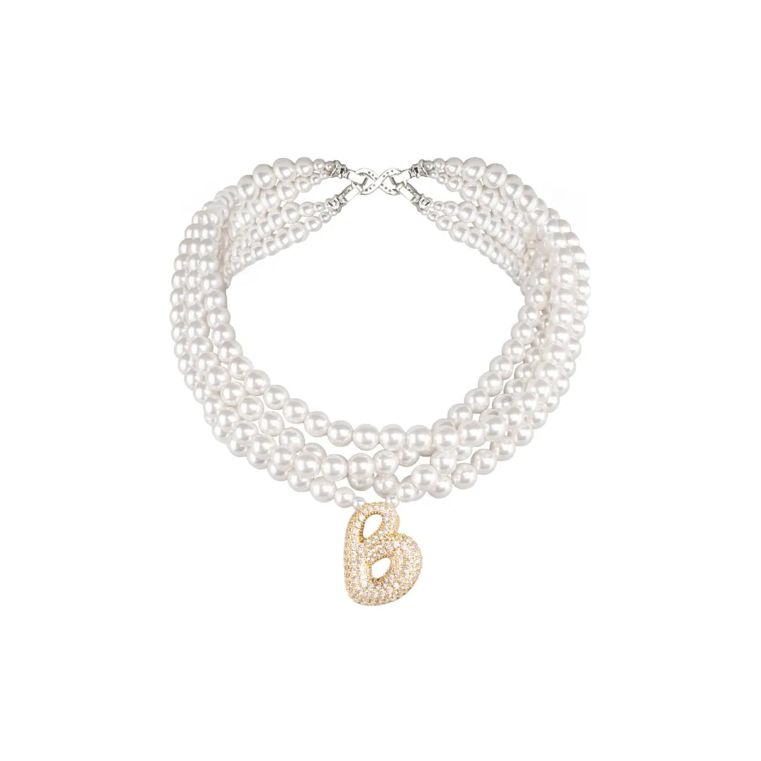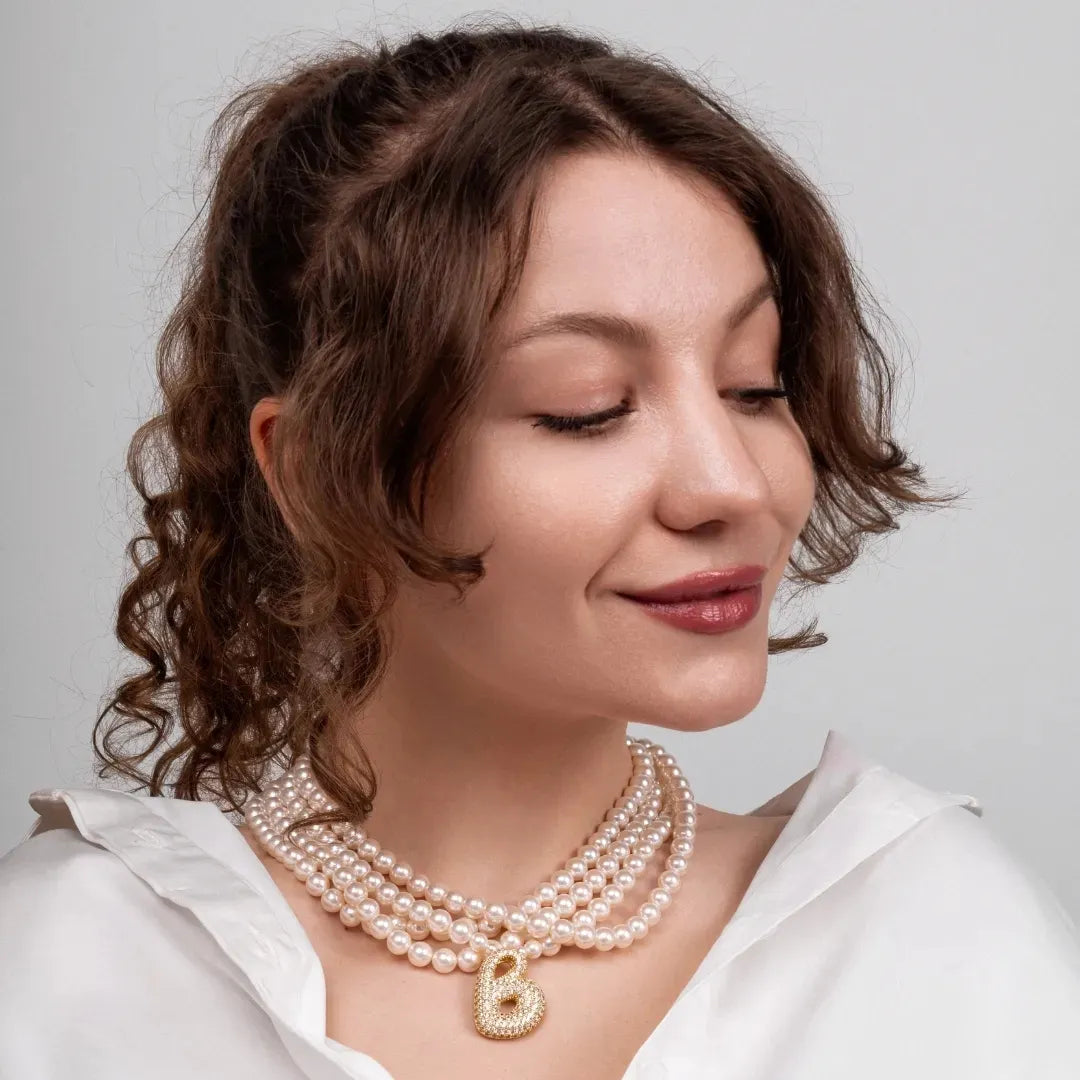 Класичний перлинний чокер отримав новий вигляд у трансформері з 4 рядів перлин з літерою. Підвіска золотистого кольор...