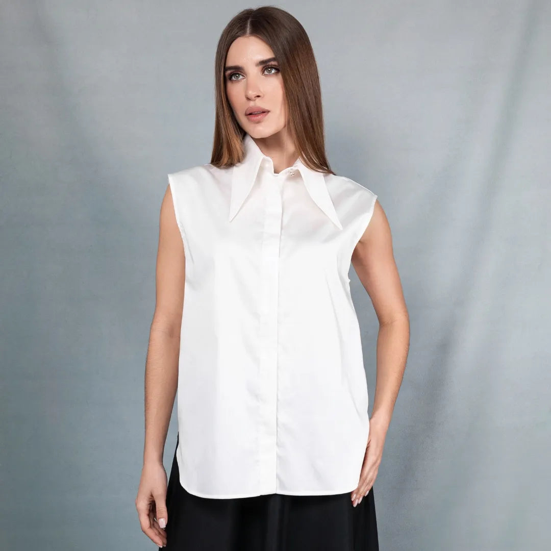 Обов'язкові характеристики літнього гардероба: легкість, комфорт та вишуканість. Наша сорочка без рукавів увібрала в себе всі ці якості! Ґудзик у формі серця та подовжений комір розставлять правильні акценти у вашому образі, а повністю бавовняна тканина даруватиме зручність навіть в найспекотніші дні.