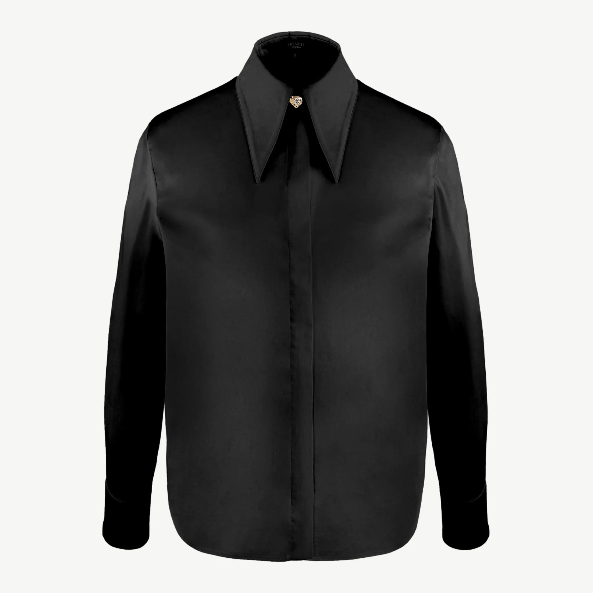 Сорочка — це базовий елемент будь-якого гардероба. А що, як ми зробили його цікавішим? Акцентний подовжений комір та верхній ґудзик у формі серця точно привернуть увагу до вашого стилю. Натуральна бавовняна тканина даруватиме вам легкість влітку, та зігріватиме в холодну погоду.