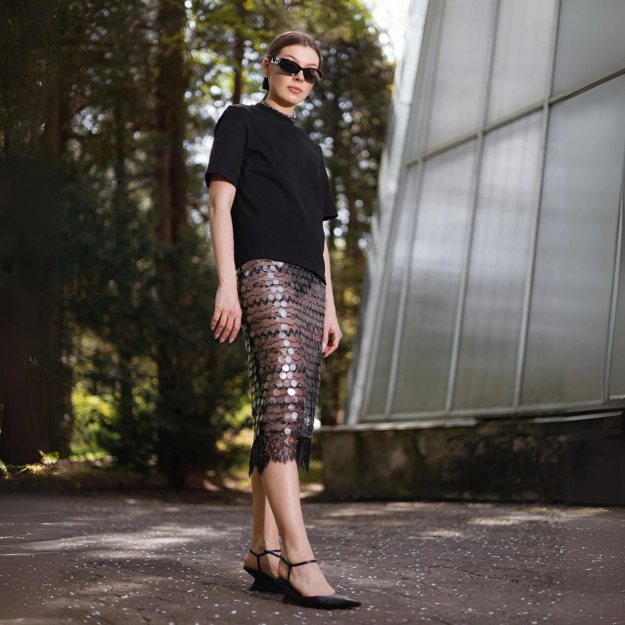 Параметри моделі Зріст моделі 165 см, груди — 84 см, талія — 71 см, на ній розмір S