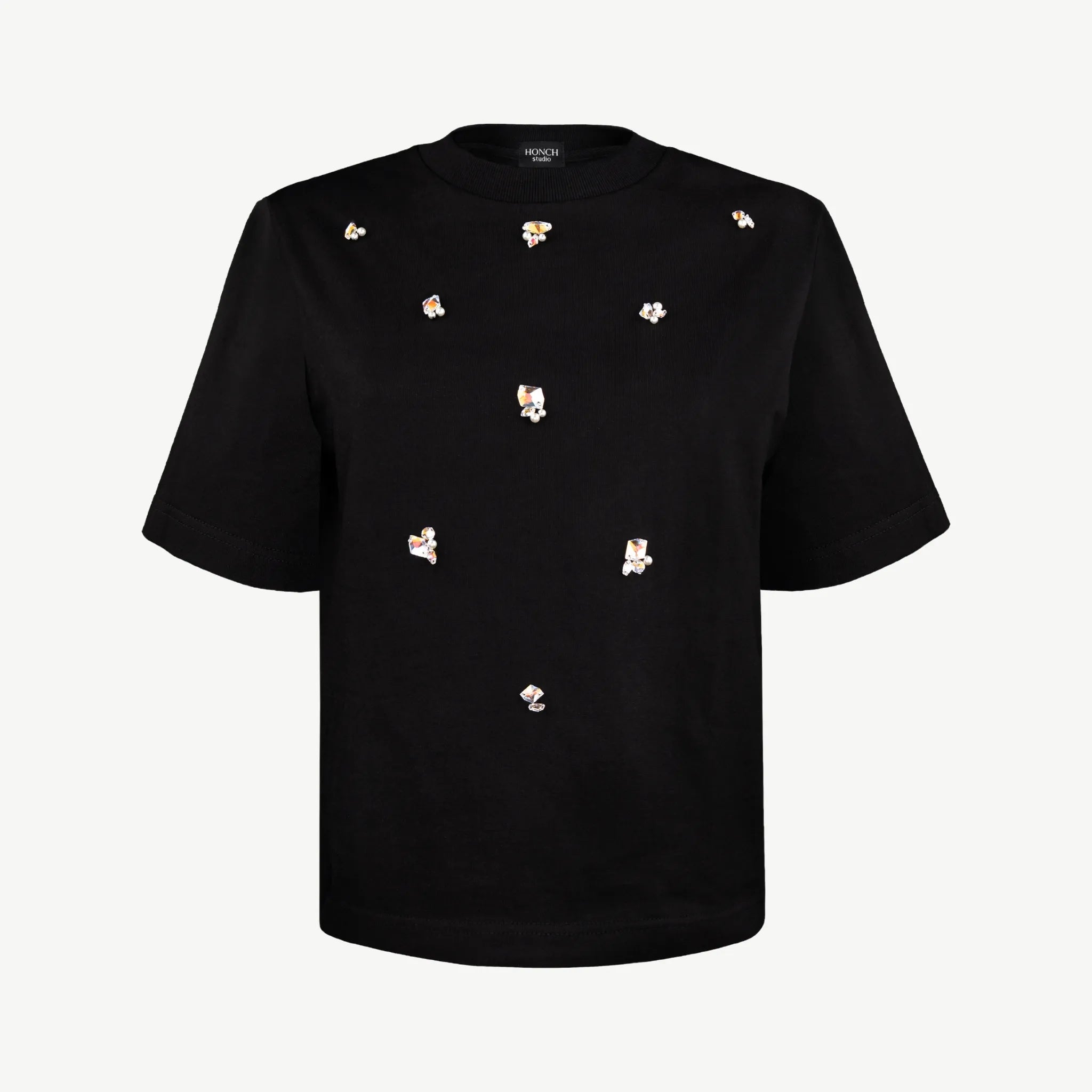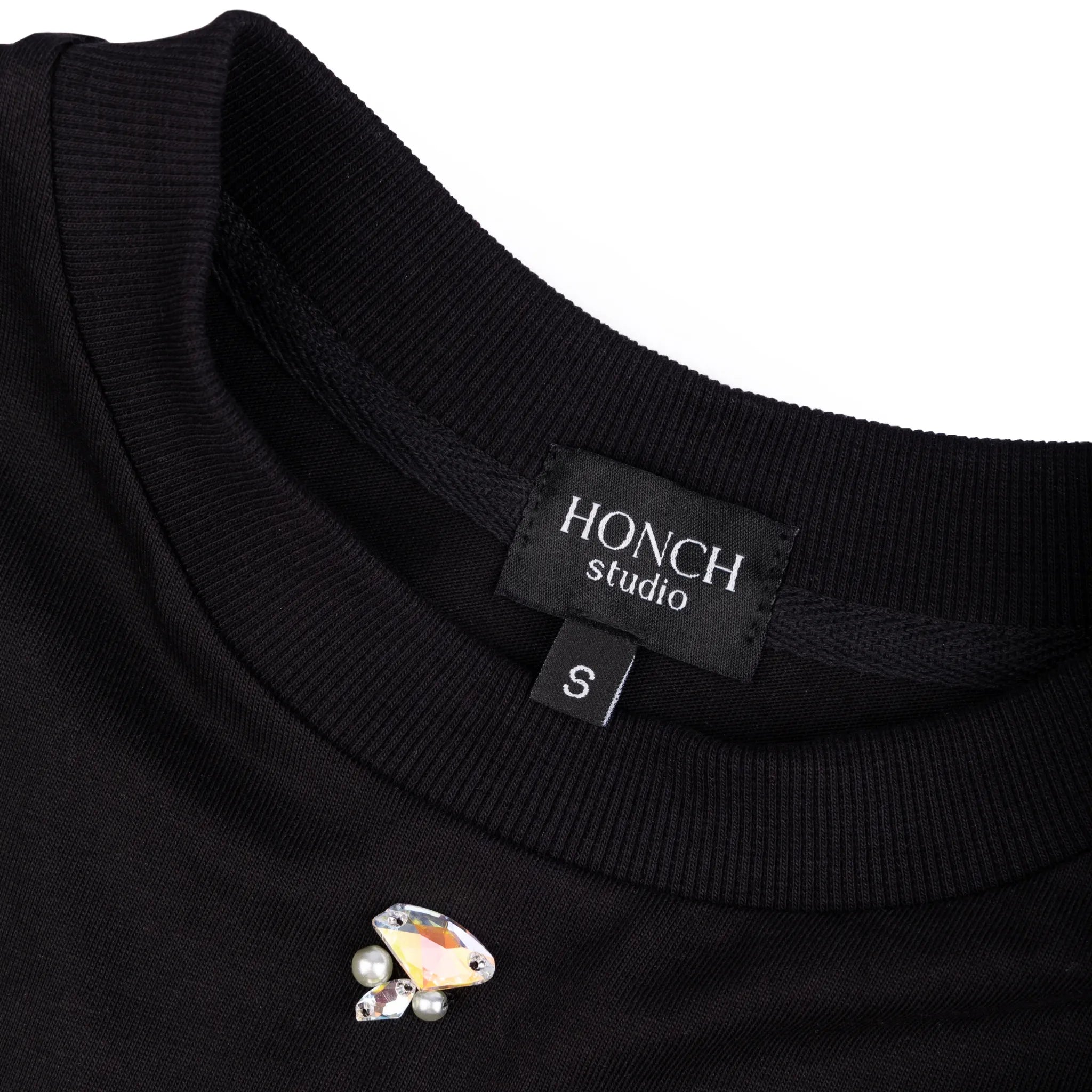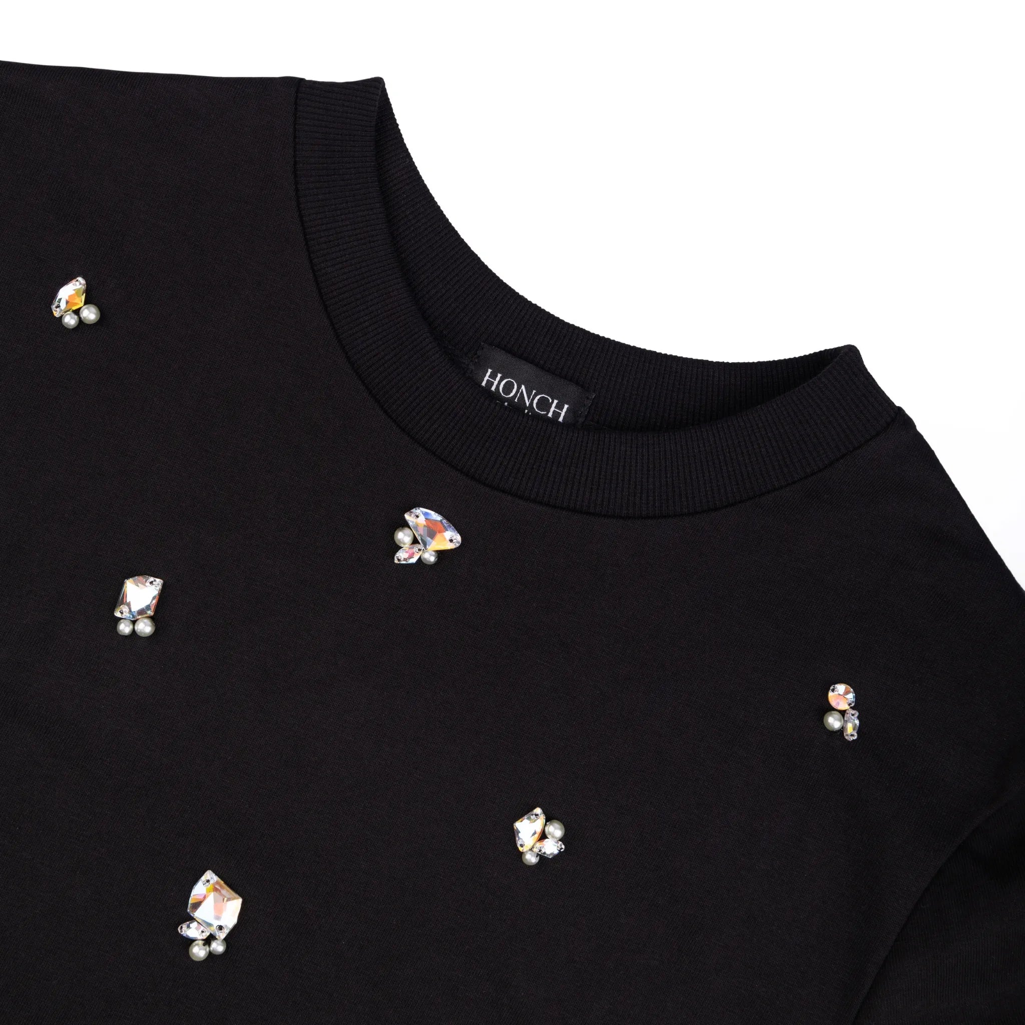 Сяючі акценти не бувають зайвими! Саме тому наша футболка доповнена стразами, які відбивають кожен промінчик, і, нага...