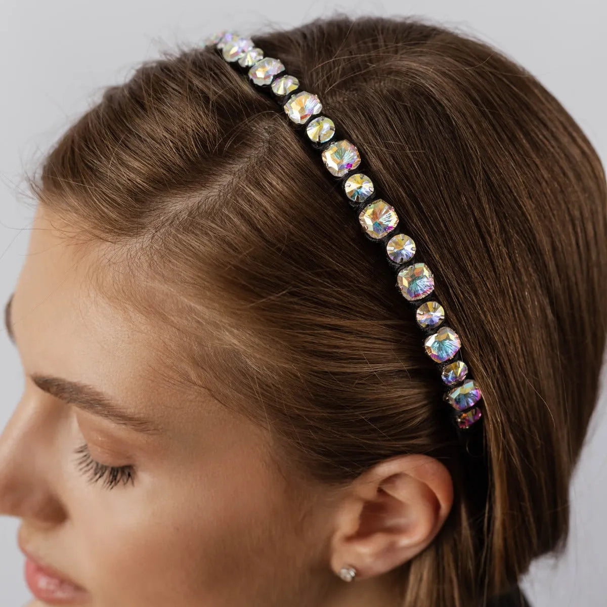 Обруч Елла прикрашений кристалами у формі огранованого квадрата, переплетеними ніжною атласною стрічкою, що вмить зробить ваш образ незрівнянно сяючим.