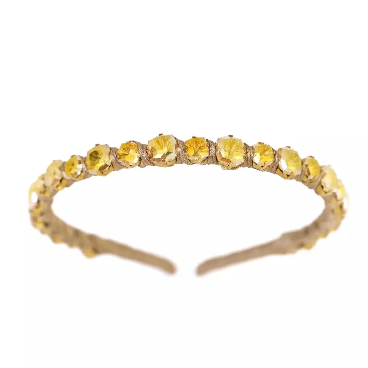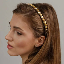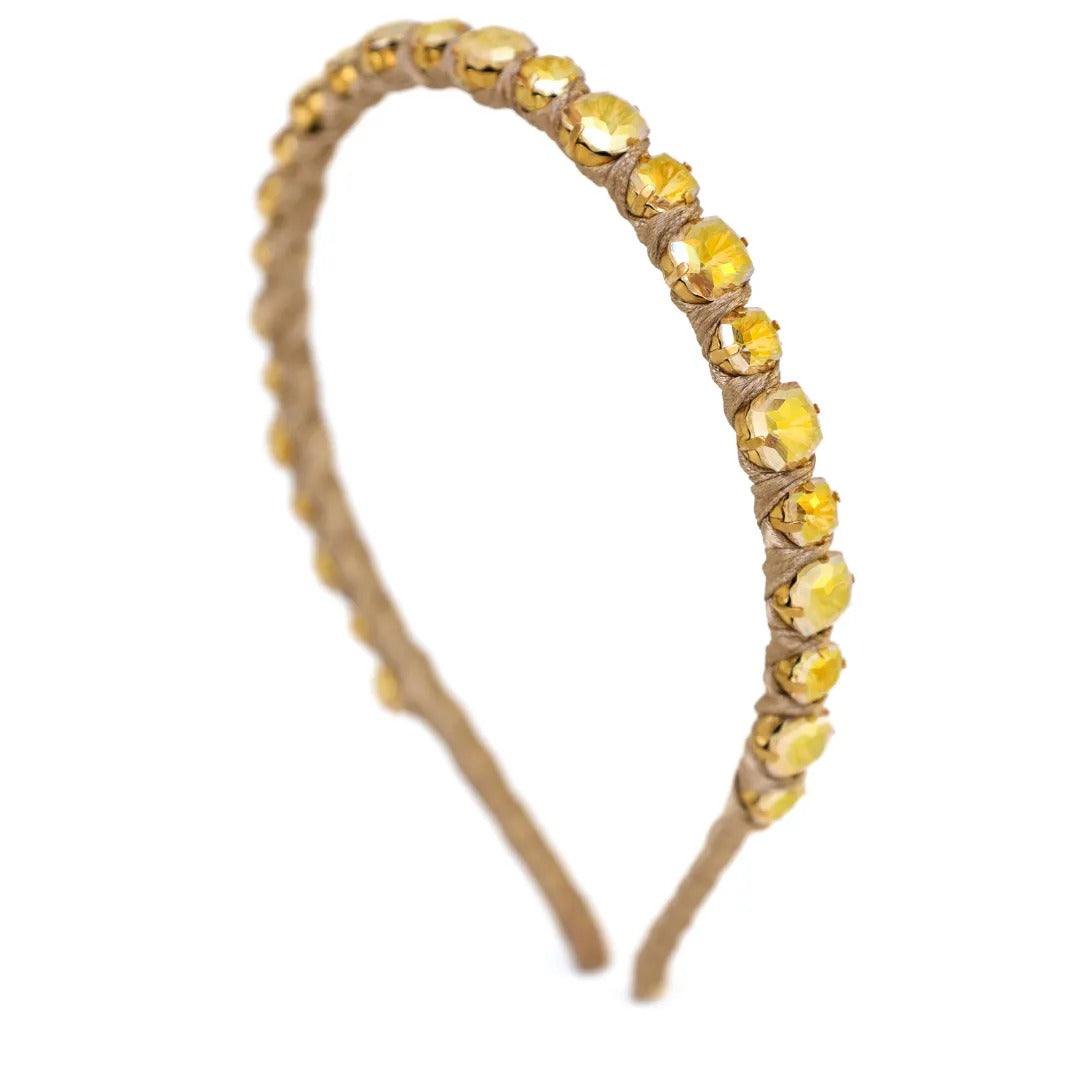 Обруч Елла прикрашений кристалами у формі огранованого квадрата, переплетеними ніжною атласною стрічкою, що вмить зробить ваш образ незрівнянно сяючим.