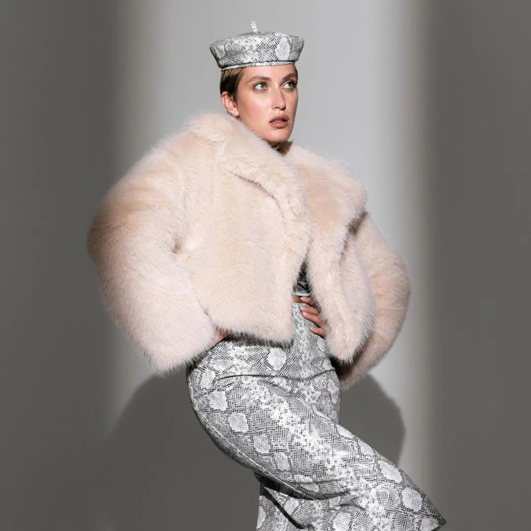 Вкорочена шуба з екохутра айворі