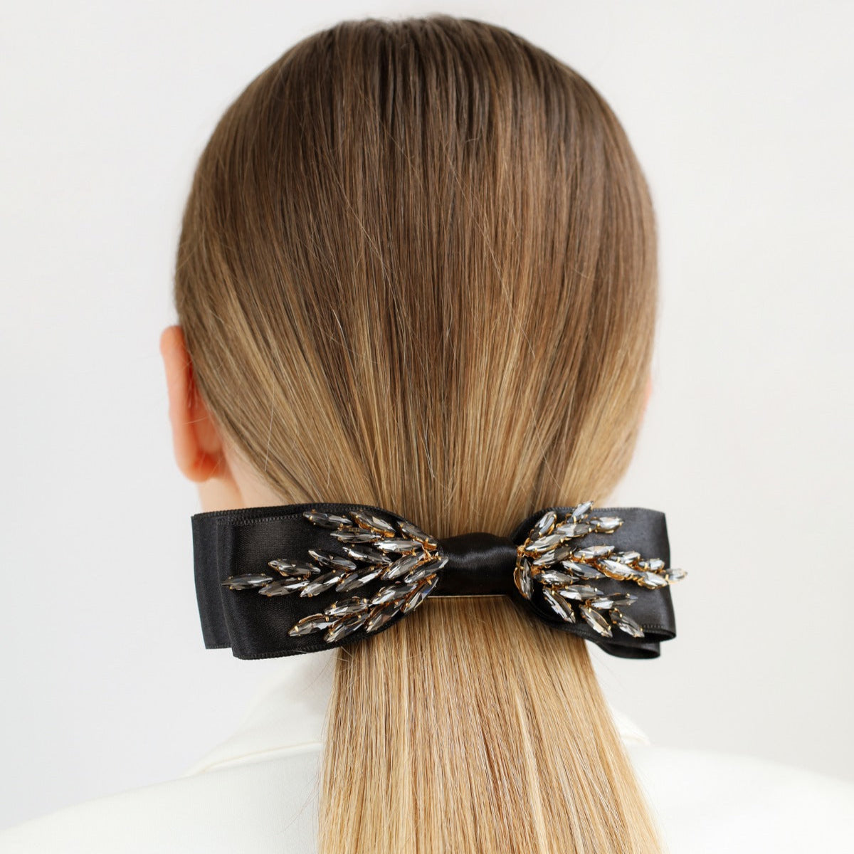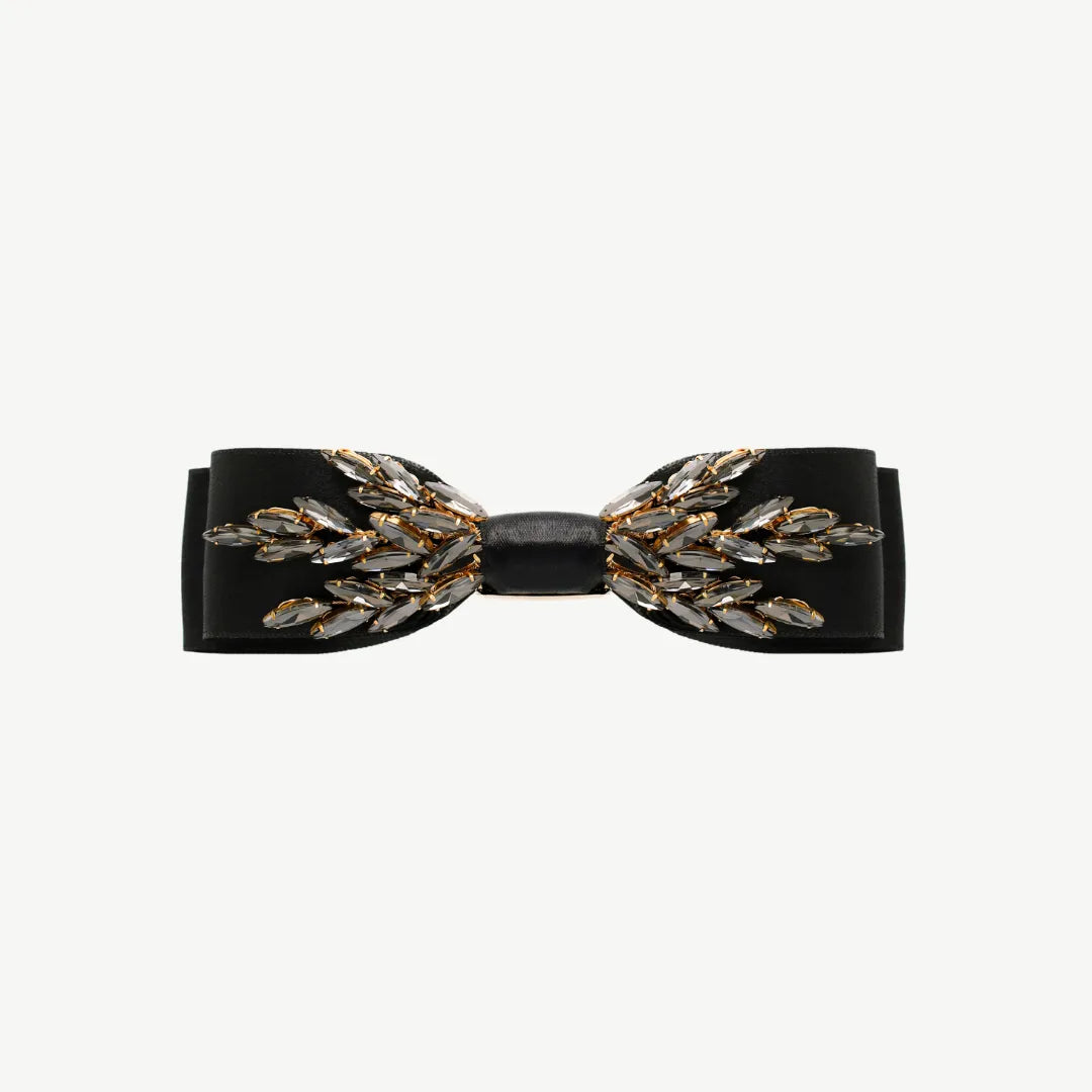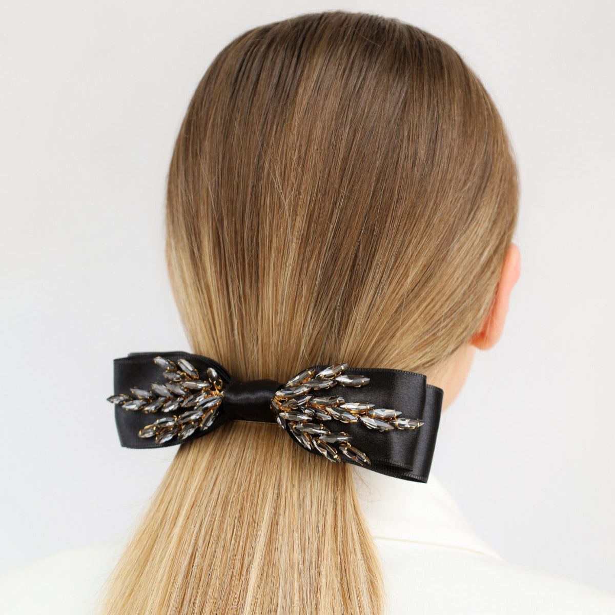 Гаррет — це ідеальне відображення позачасової класики. Сплетіння кришталевих страз утворює композицію, що нагадує тендітні колоски. Такий аксесуар чудово впишеться в гардероб любителів легких, але блискучих акцентів. Бант довершений французькою заколкою, щоб забезпечити зручну фіксацію для Вашої зачіски.