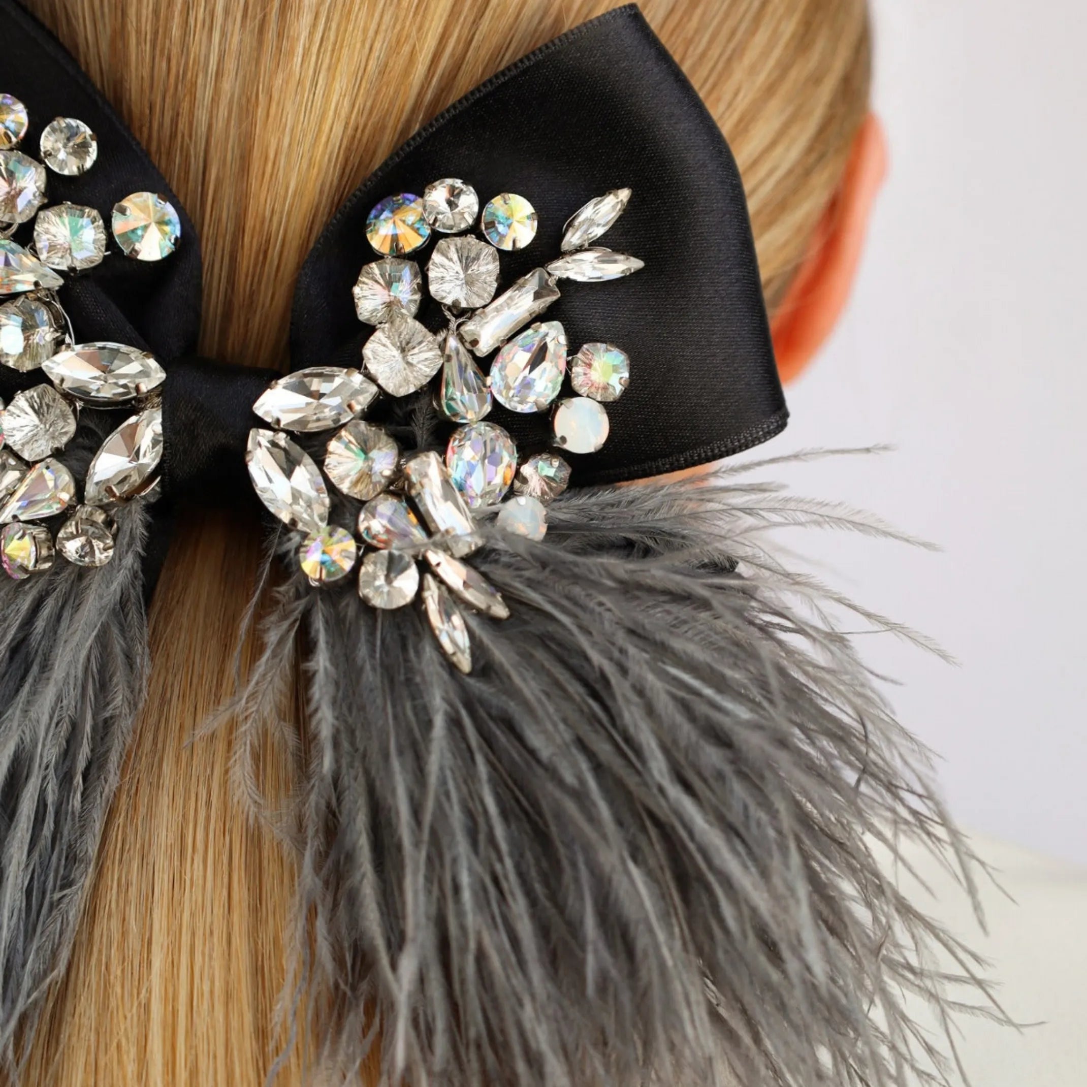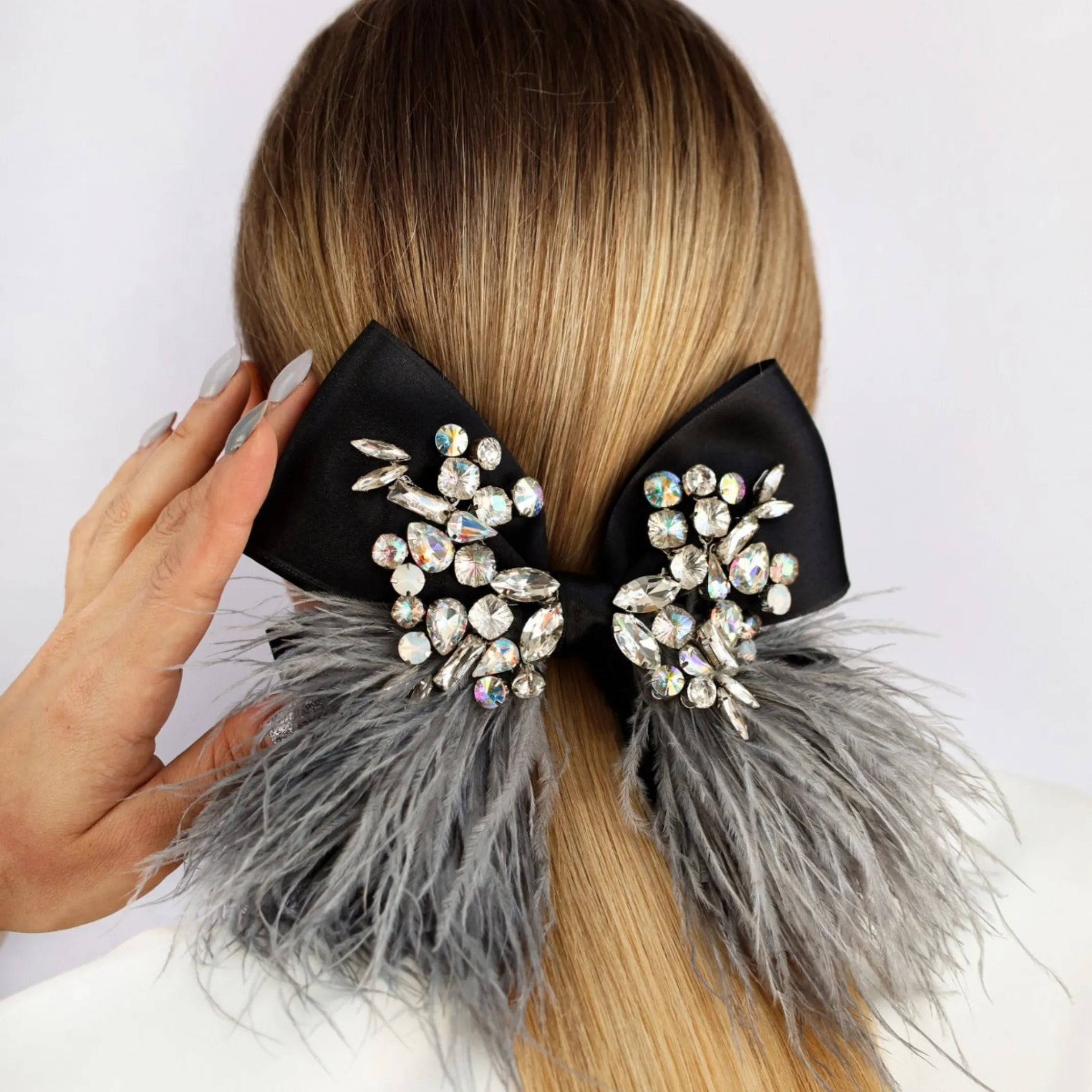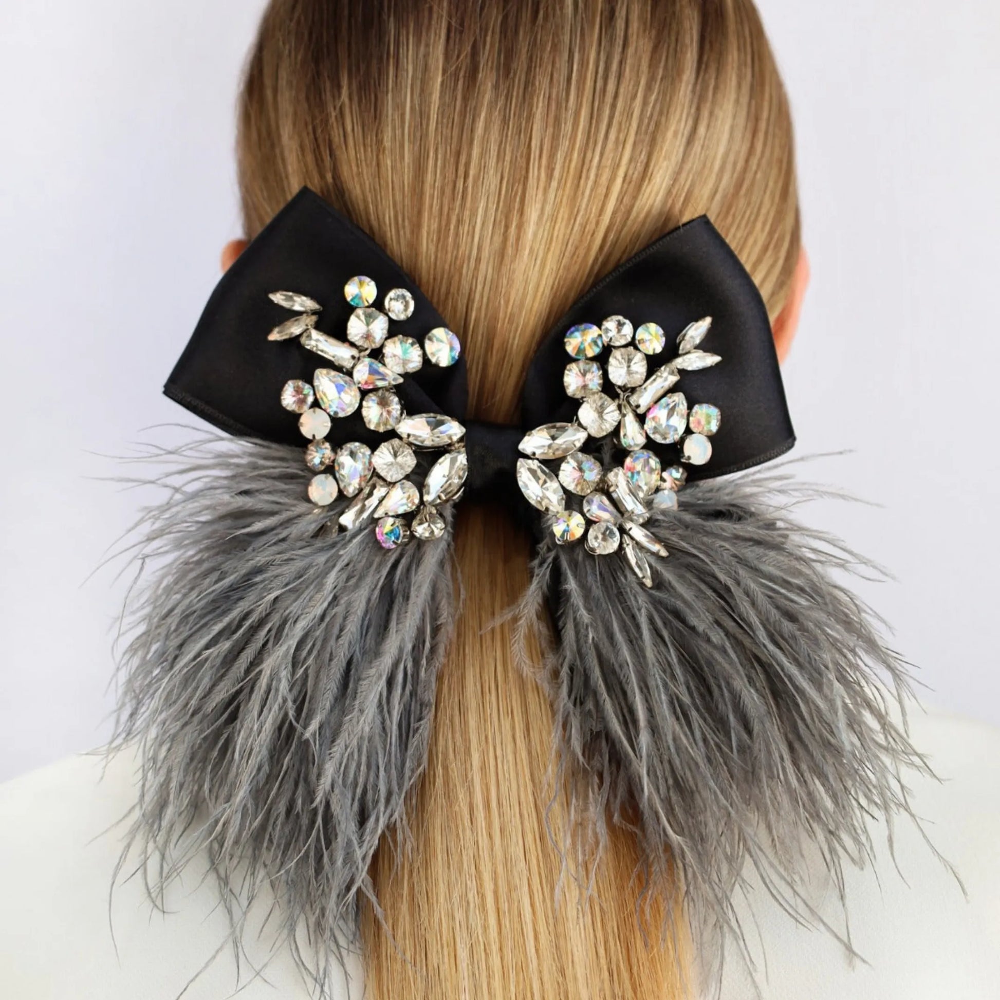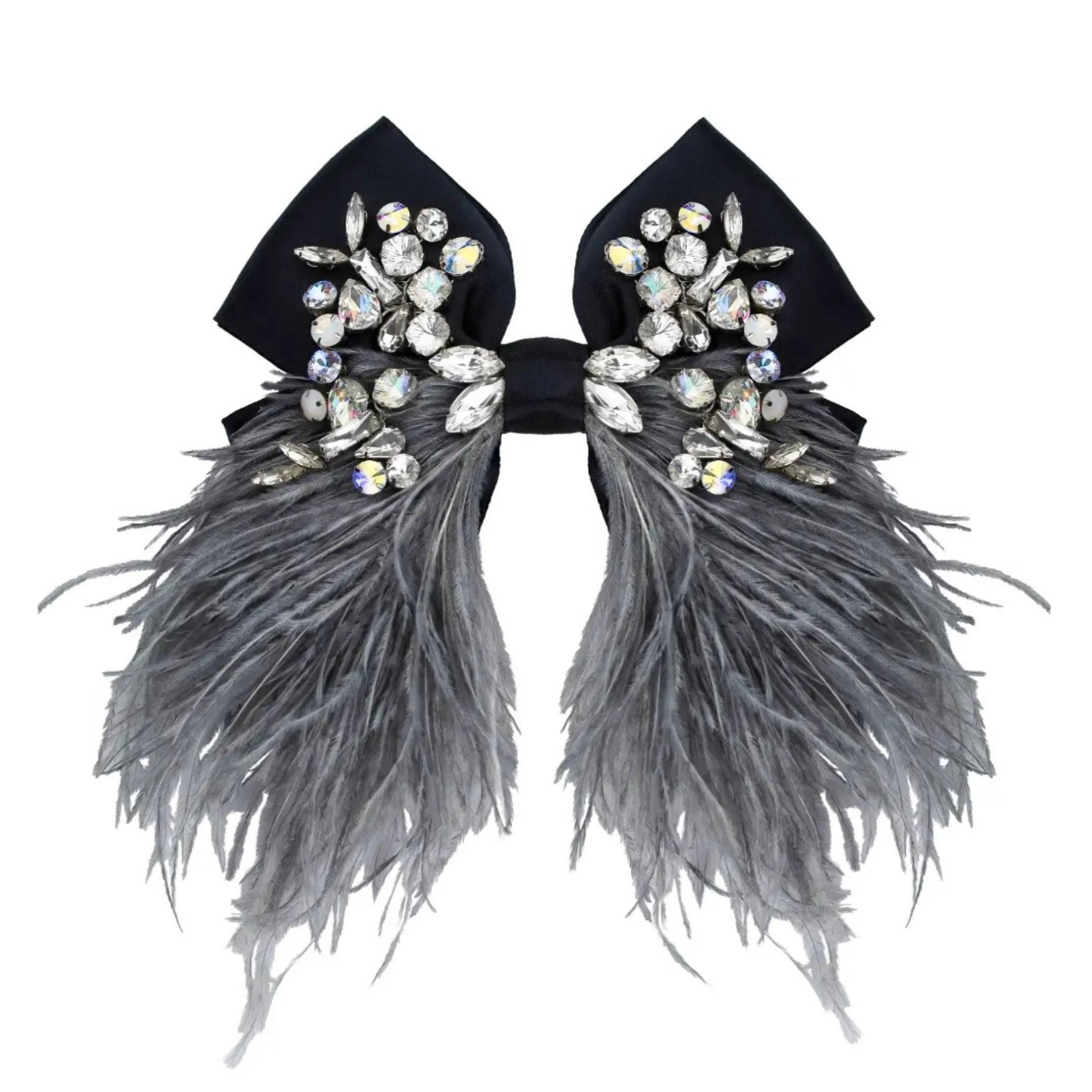 Бант Гілберт виконаний з сатинової стрічки та задекорований стразами.Розмір:Довжина - 18 см (включаючи пір'я)Ширина -...