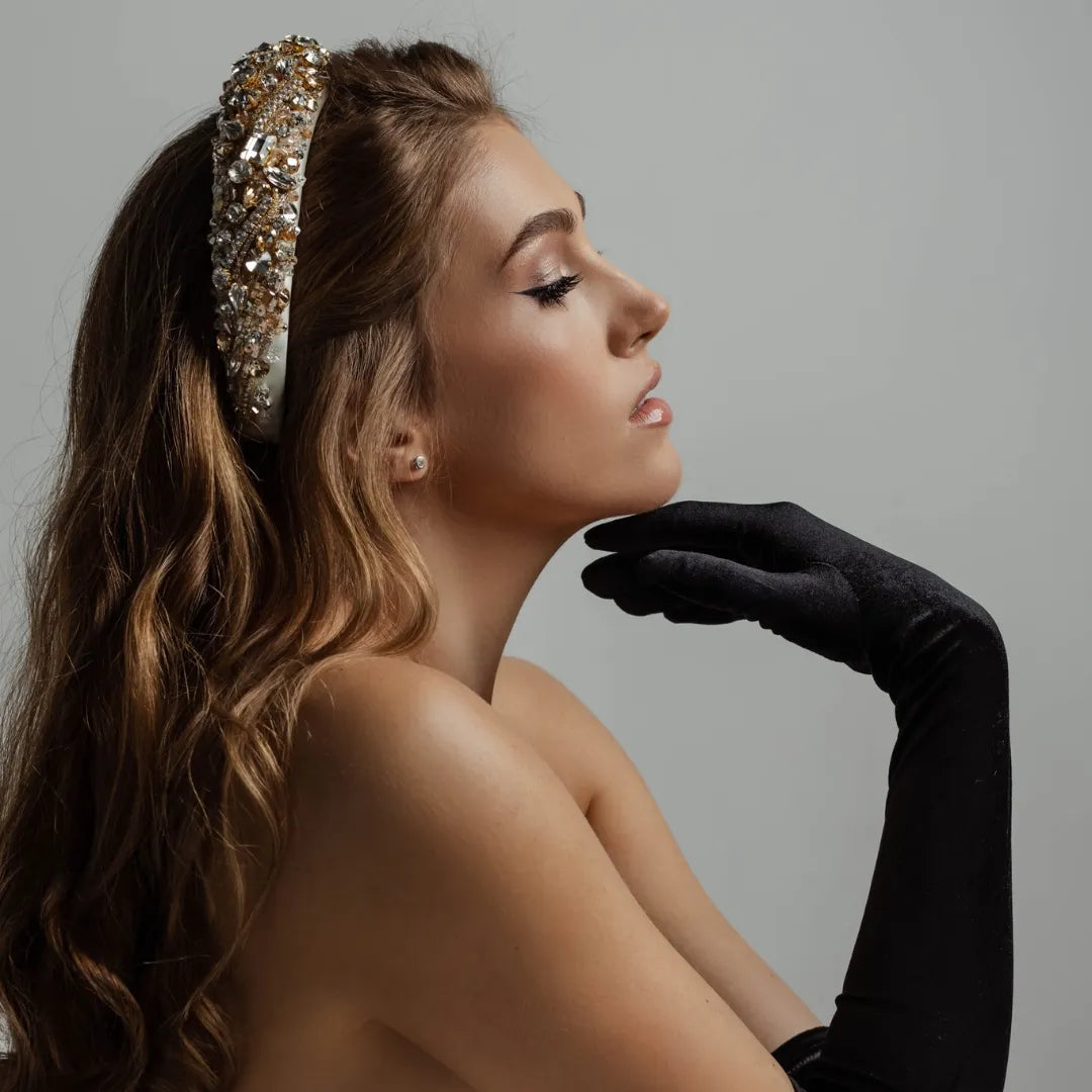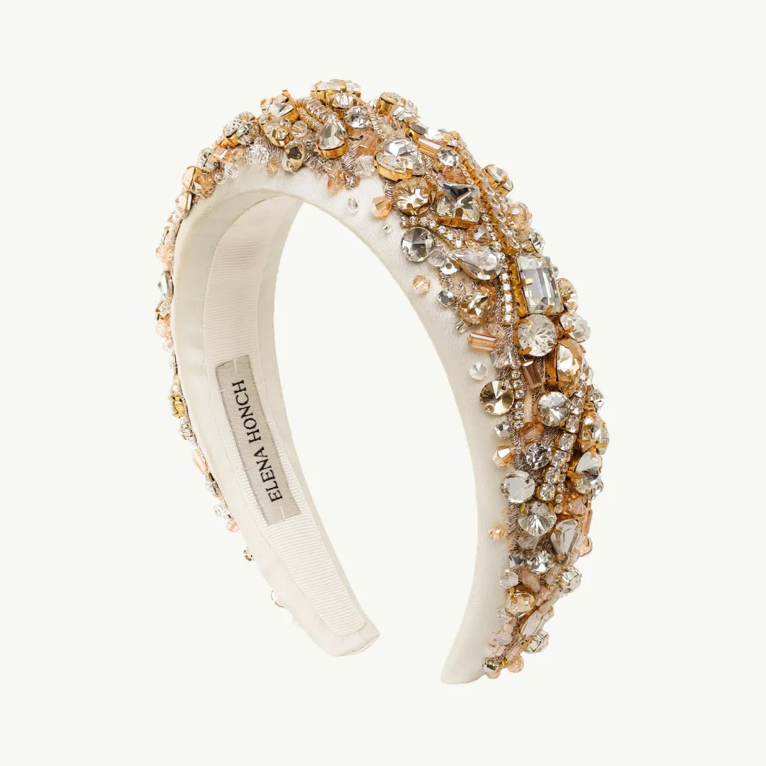 Сяйте яскраво та барвисто з обручем Белла! Цей неперевершений аксесуар виблискує з усіх боків завдяки щедрому наповненню стразами. Його гнучкість забезпечує комфорт, а внутрішня частина прошита гросгреном, завдяки чому він ідеально тримається на волоссі всю вечірку.