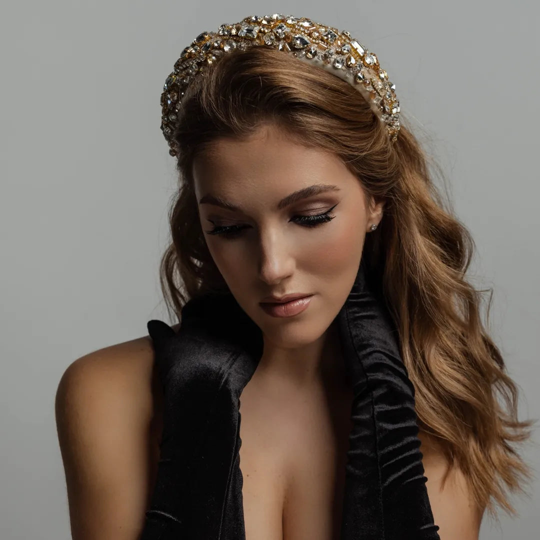 Обруч Белла зі стразами золотий