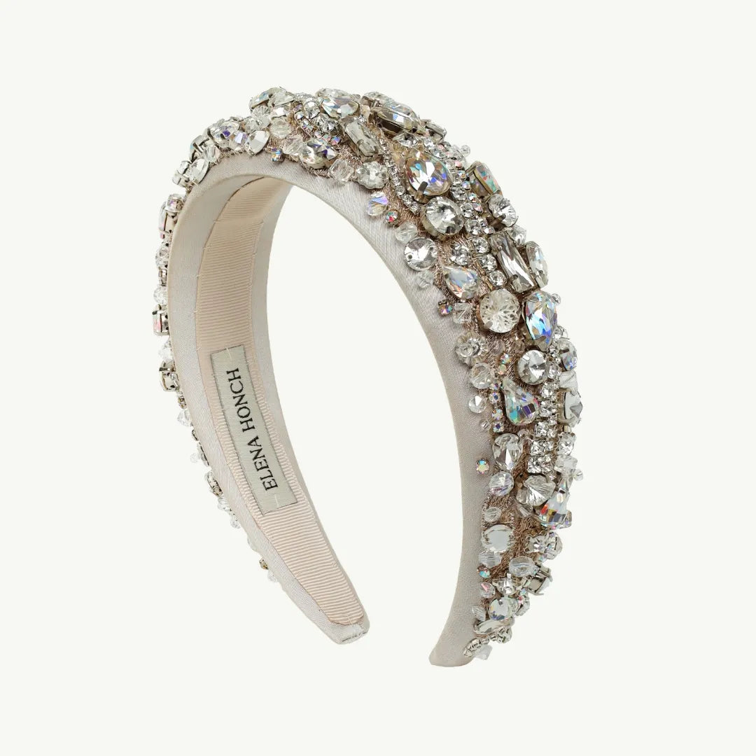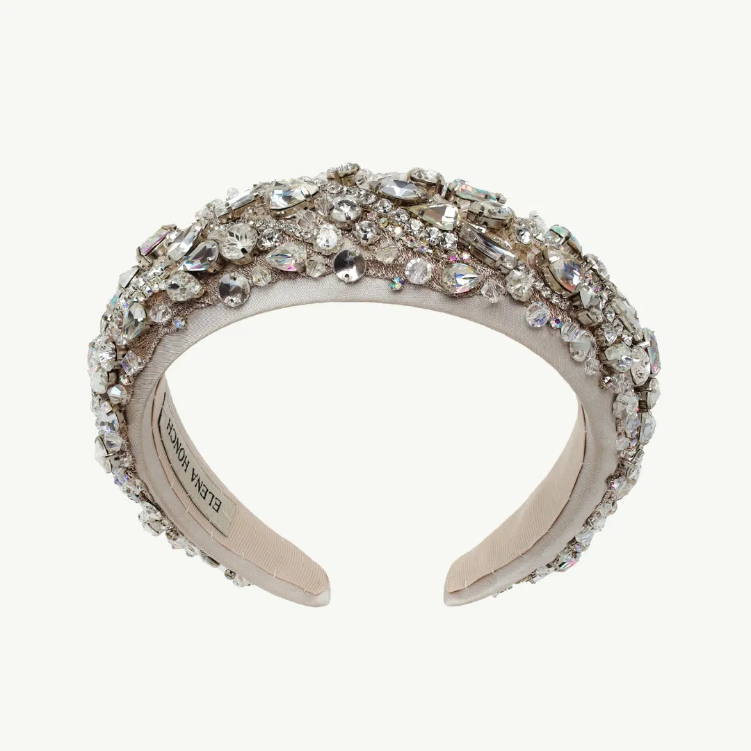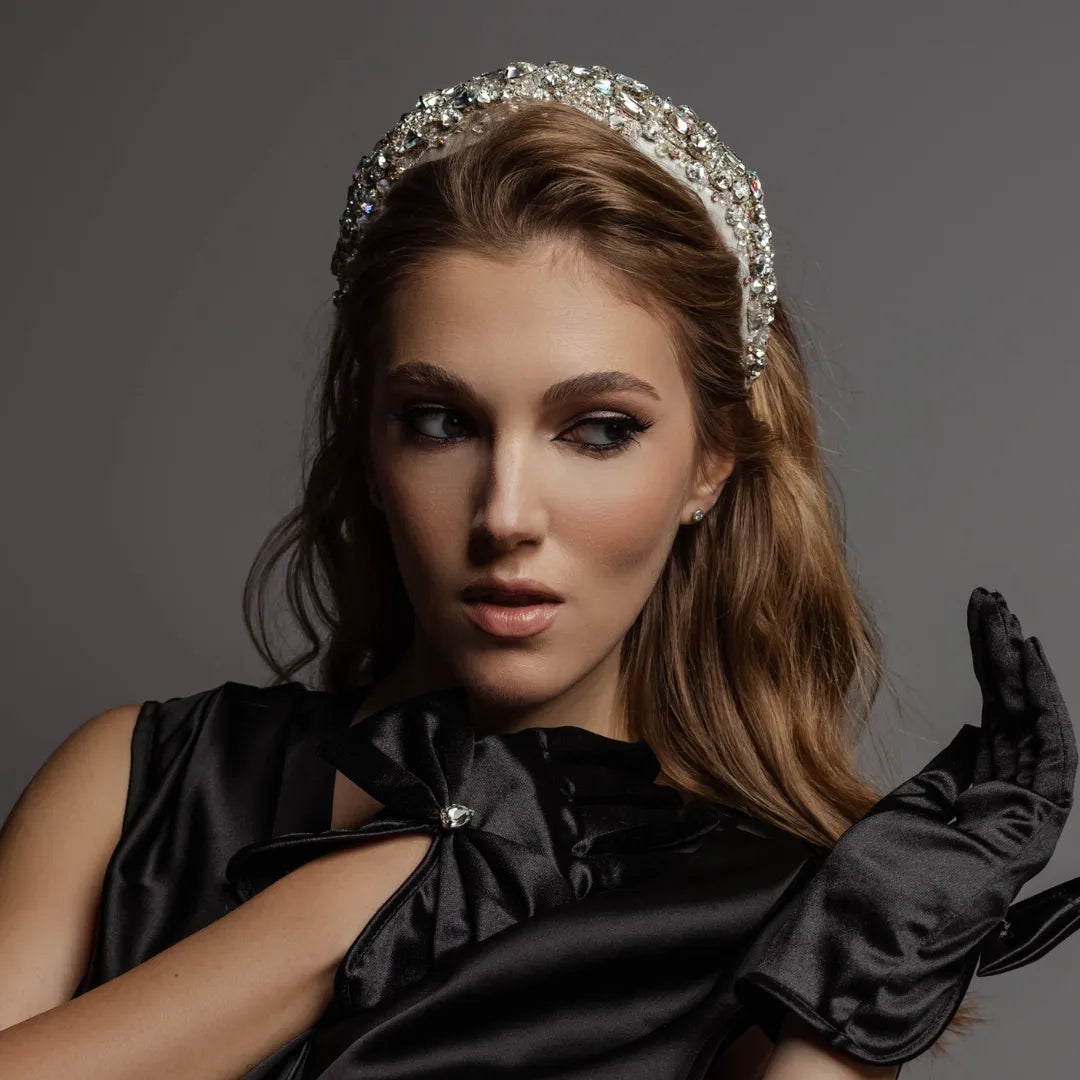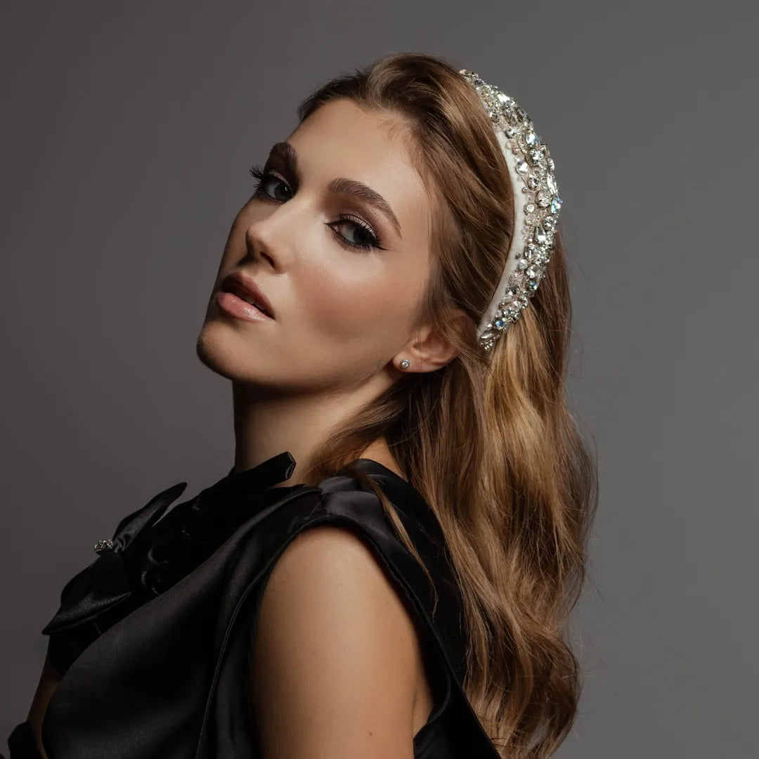 Сяйте яскраво та барвисто з обручем Белла! Цей неперевершений аксесуар виблискує з усіх боків завдяки щедрому наповненню стразами. Його гнучкість забезпечує комфорт, а внутрішня частина прошита гросгреном, завдяки чому він ідеально тримається на волоссі всю вечірку.