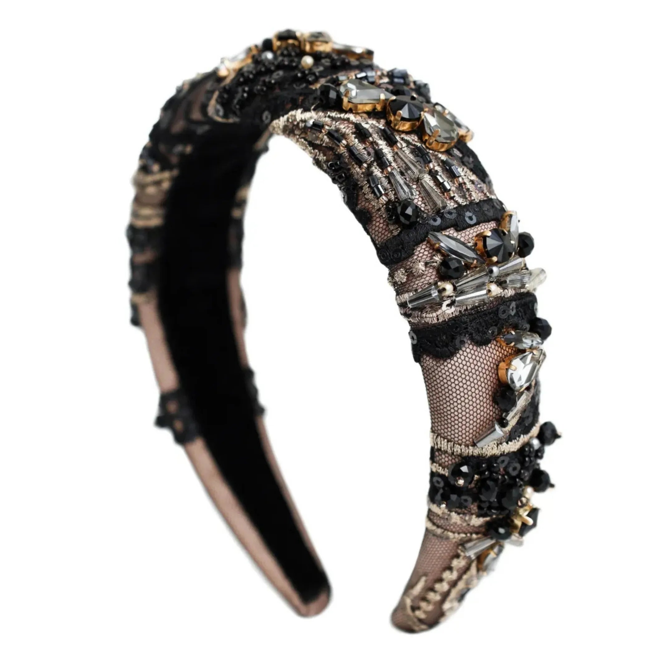 Пов'язка на голову Ребекка – це як сильна впевнена в собі жінка, яка отримує все, чого хоче. Чіткі горизонтальні лінії гармонійно поєднуються з чорними блискучими стразами, щоб підкреслити ваш індивідуальний, ексклюзивний стиль. Сміливо заявіть про себе будь-якого дня зі зручною пов'язкою на голову від Honch studio.