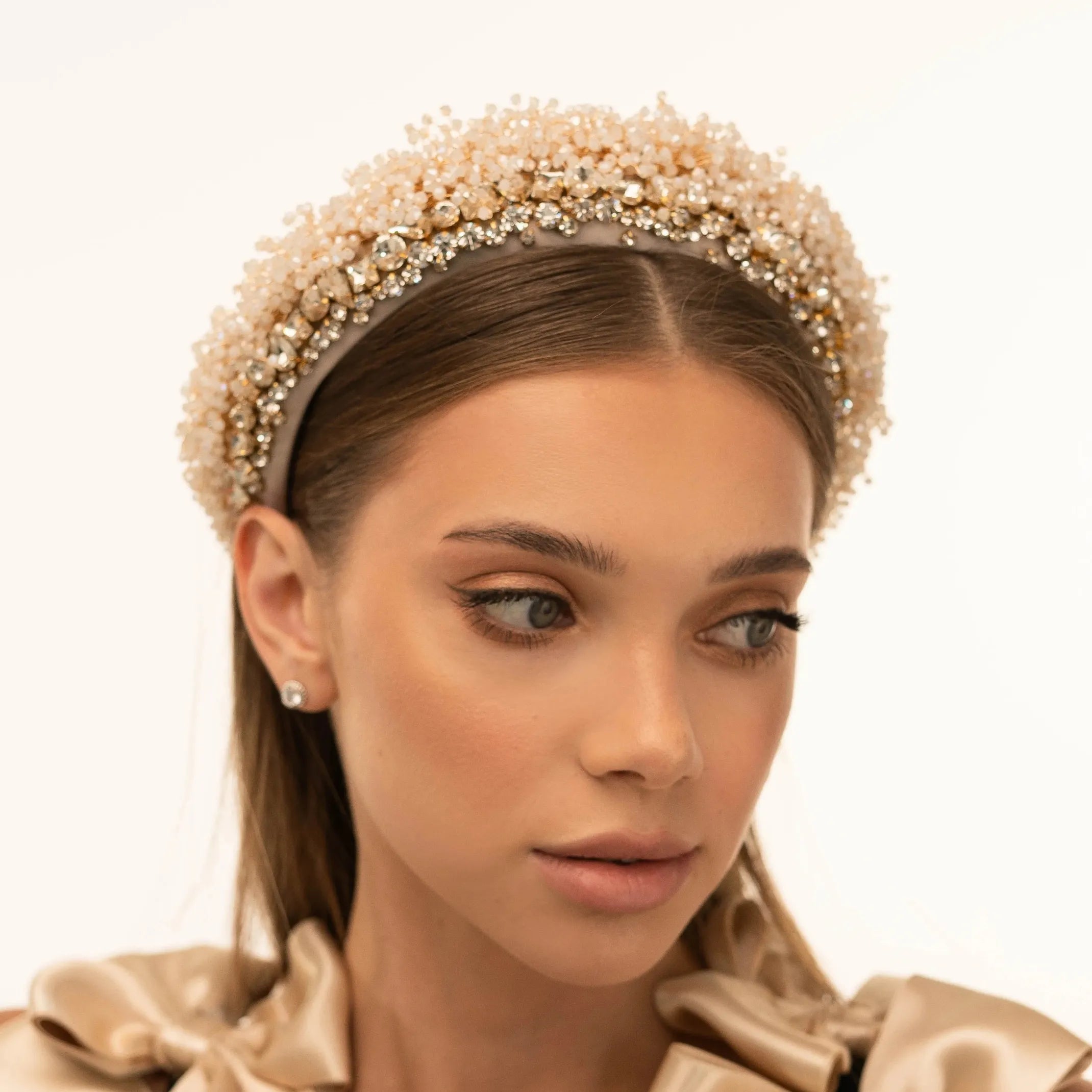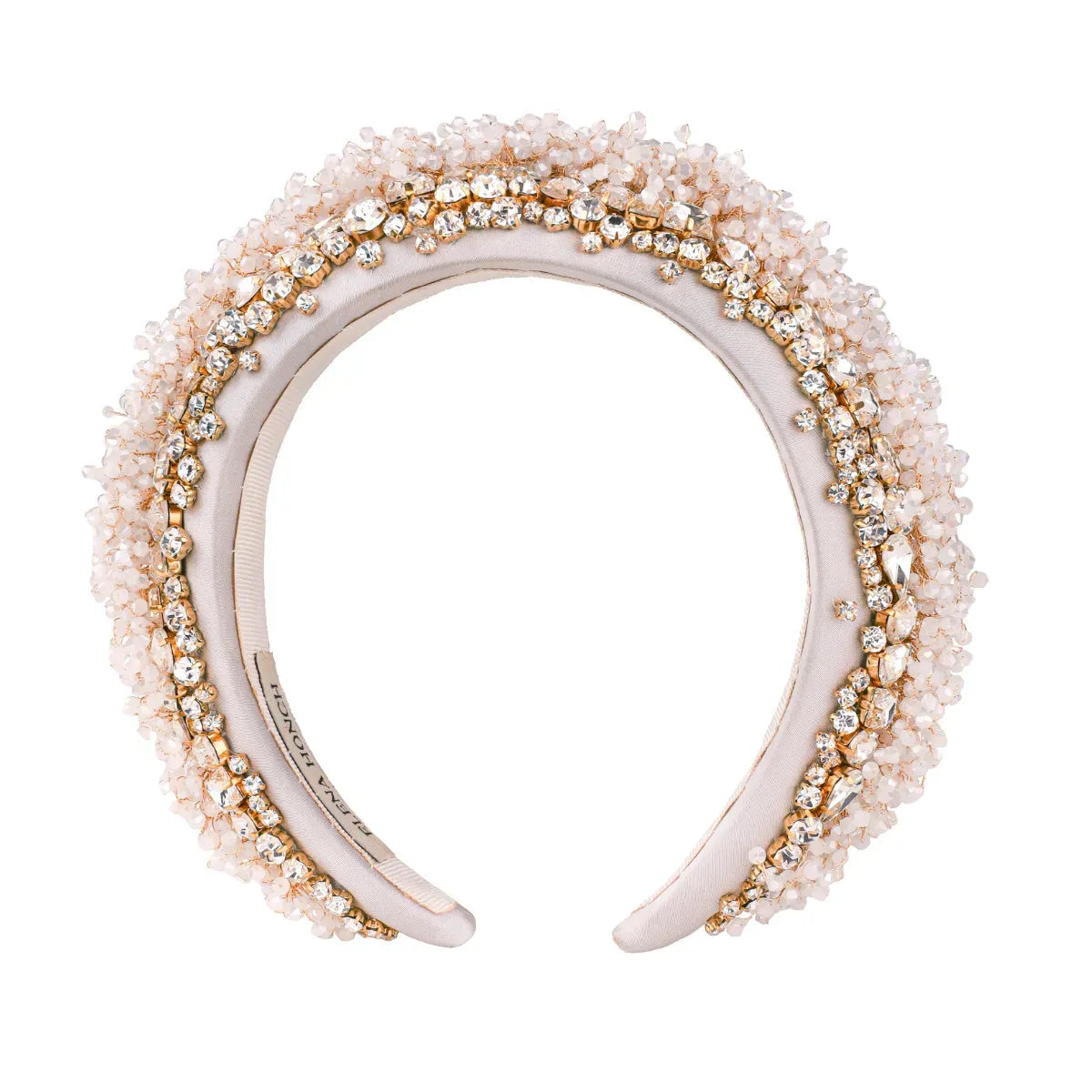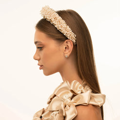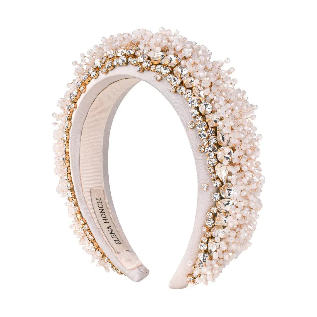 Втілення розкоші. Обруч Стелла – це дивовижна композиція з намистин та кришталевих страз. Будьте певні: кожен буде зачарований вашим образом з нею. Усі дрібні деталі вишиті вручну, щоб стати винятковим завершальним штрихом до вашої зачіски, що сяє під світлом.