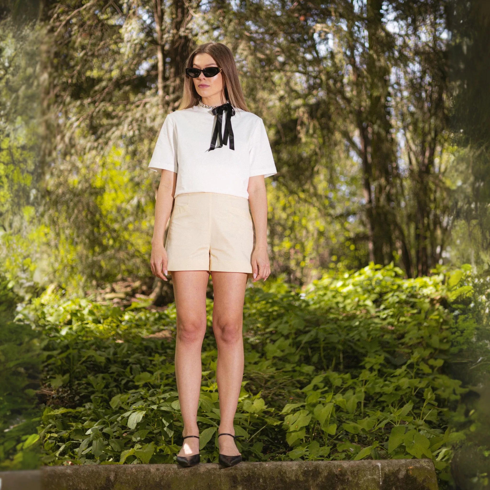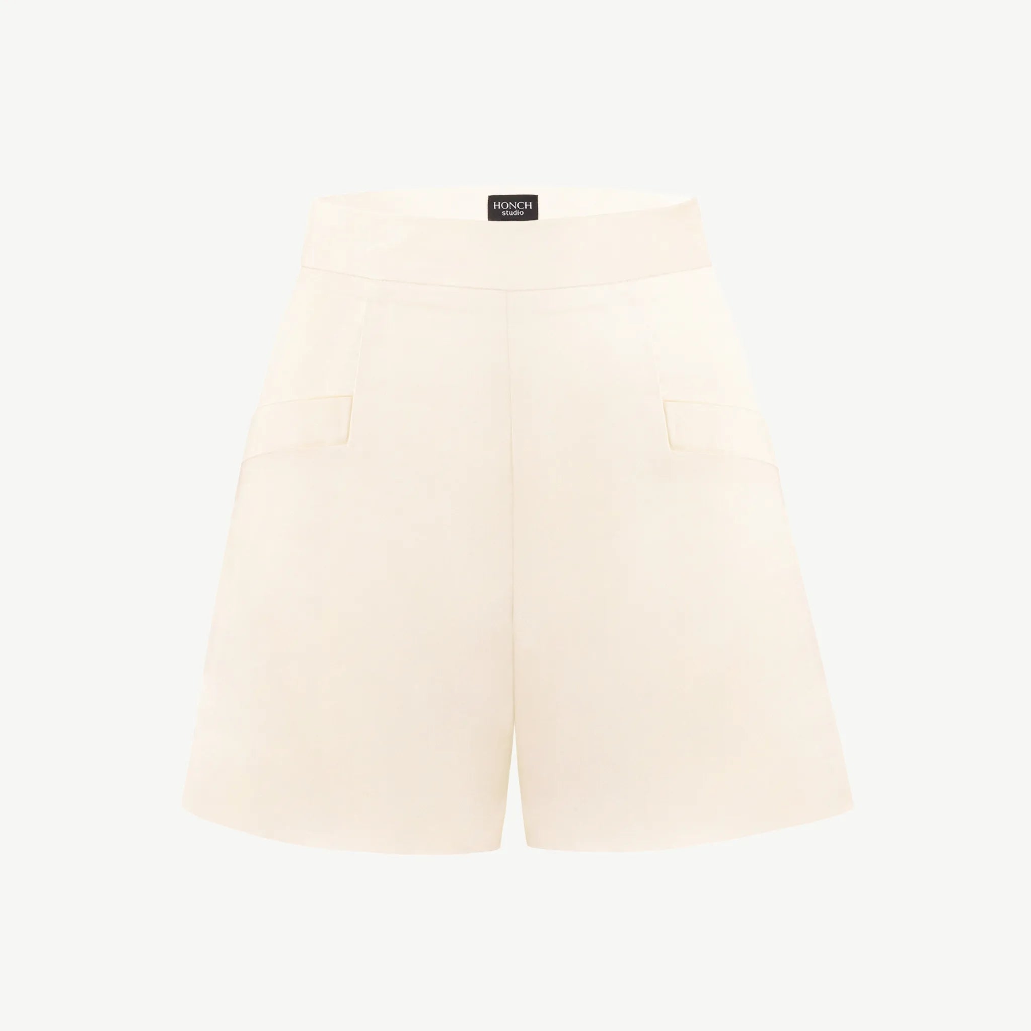 Класичні шорти з костюмної тканини, які стануть улюбленими у твоєму гардеробі. Імітація кишень спереду виробу зробить вигідний акцент бедрах. Вони застібаються на блискавку, що прихована у потаємному боковому шві для додаткової лаконічності. Шорти чудово підійдуть для літніх прогулянок та для стильних офісних образів.