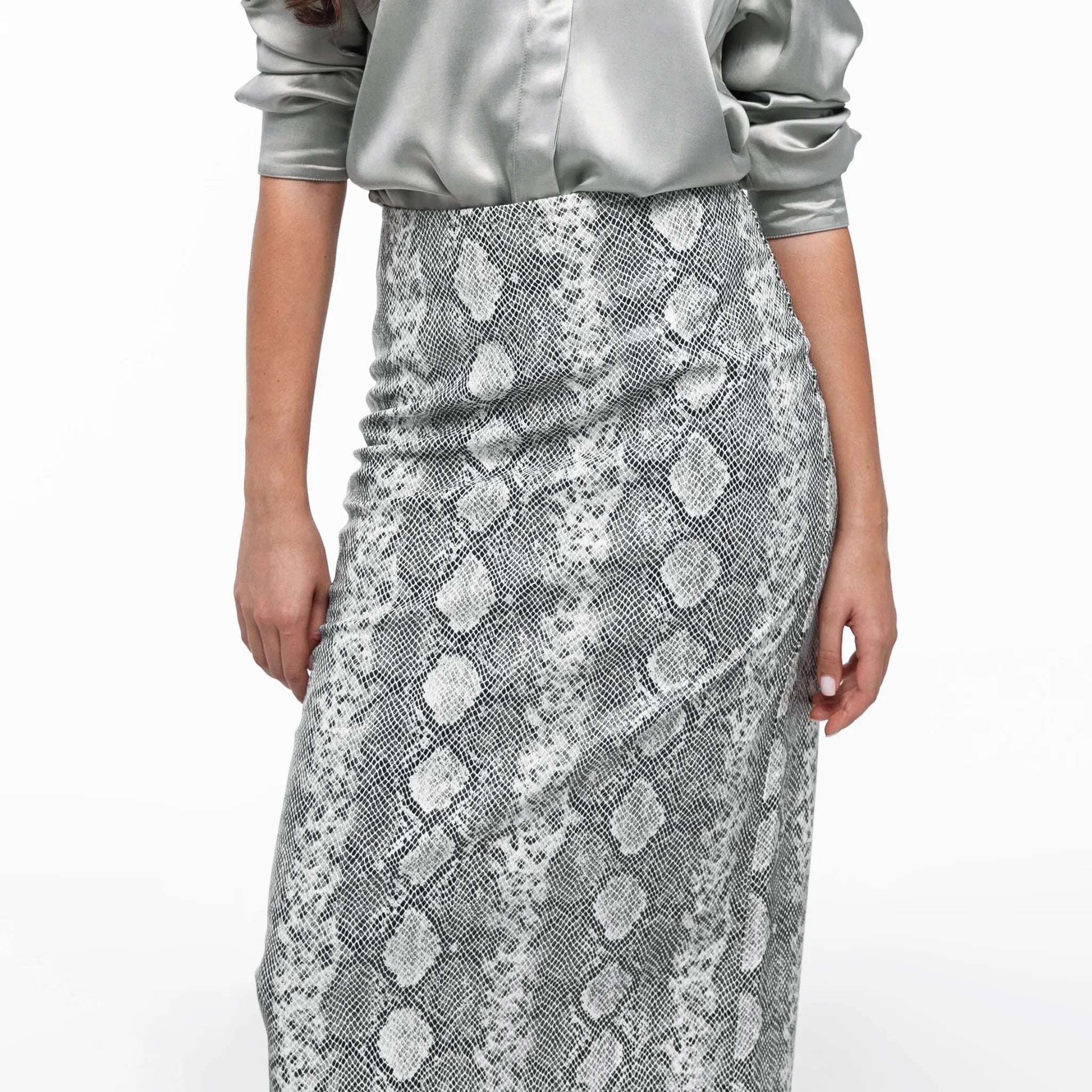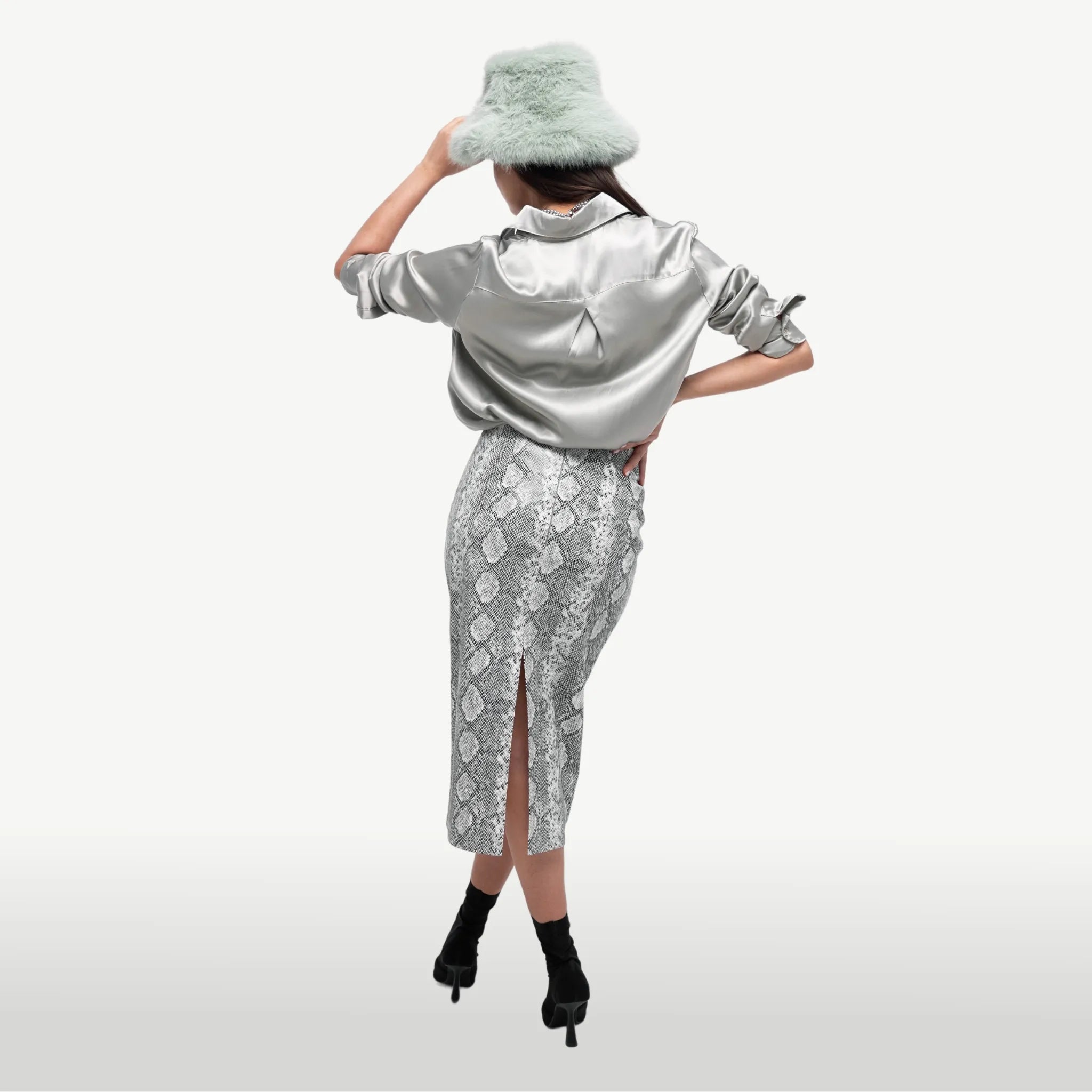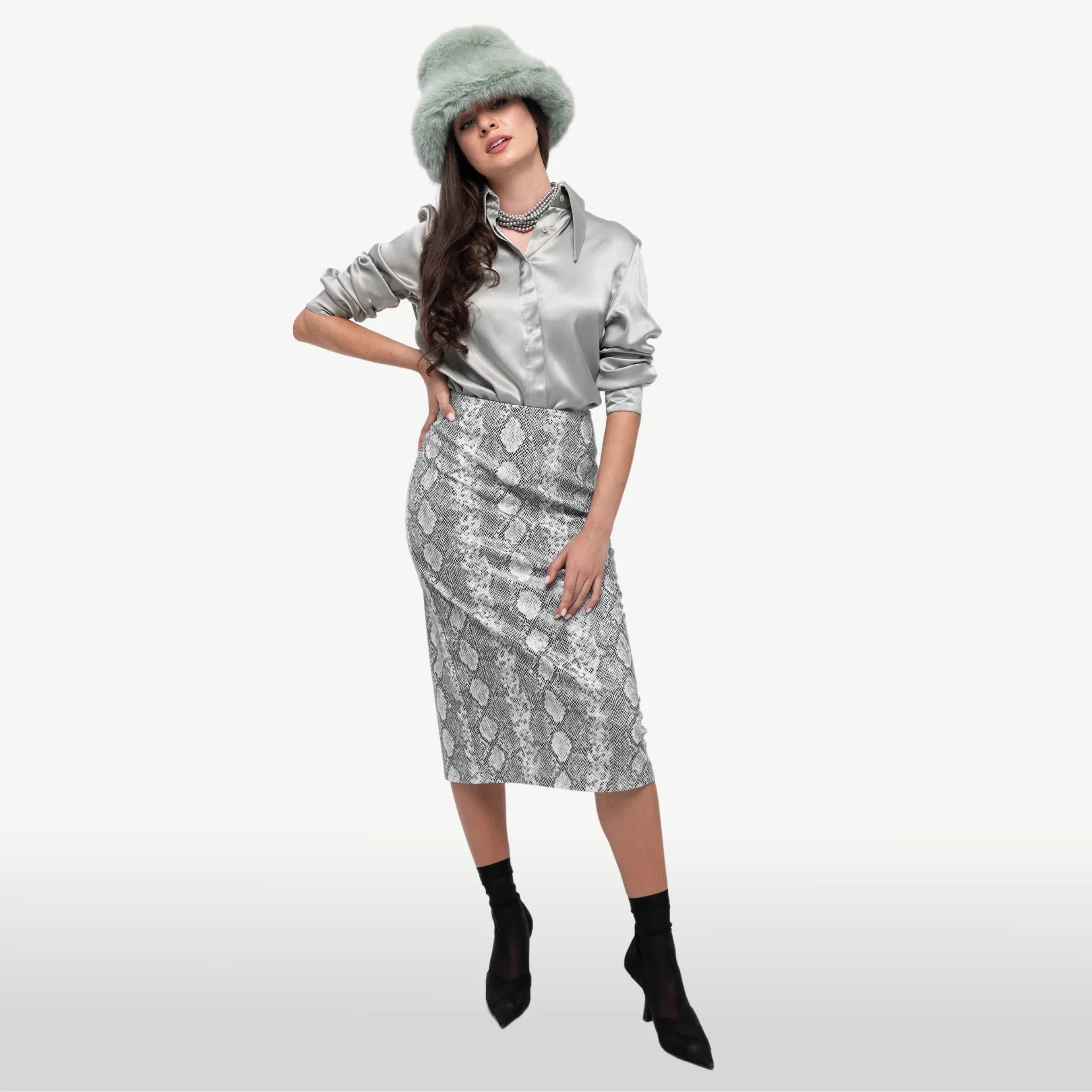 Не соромтесь бути в центрі уваги! Обирайте для себе сміливі та цікаві образи. Такому настрою ідеально пасуватиме наша мідіспідниця із еко-шкіри під рептилію. Вона чудово підкреслить не тільки бажання впевнено заявляти про ваш унікальний стиль, а і тендітний силует вашої фігури.