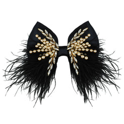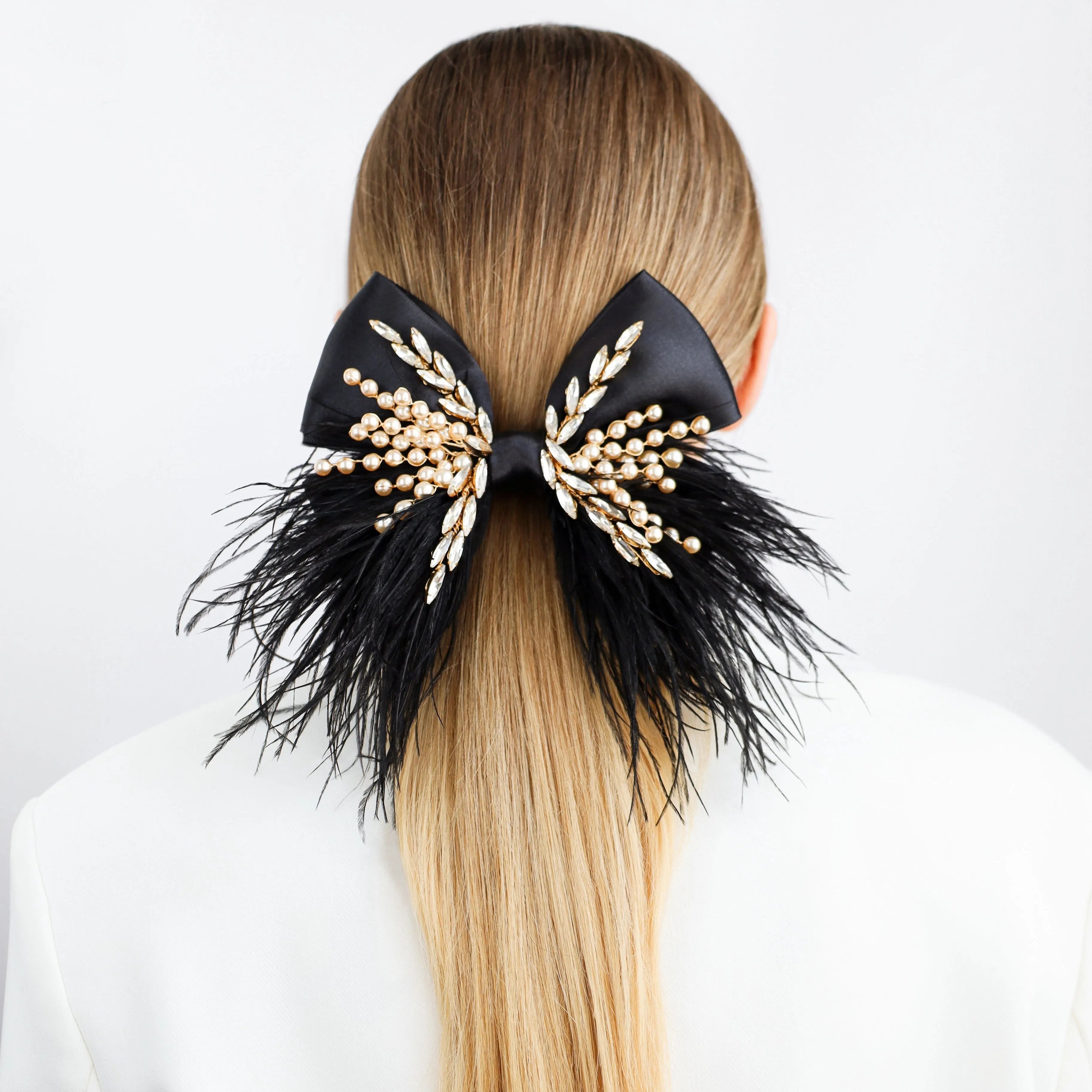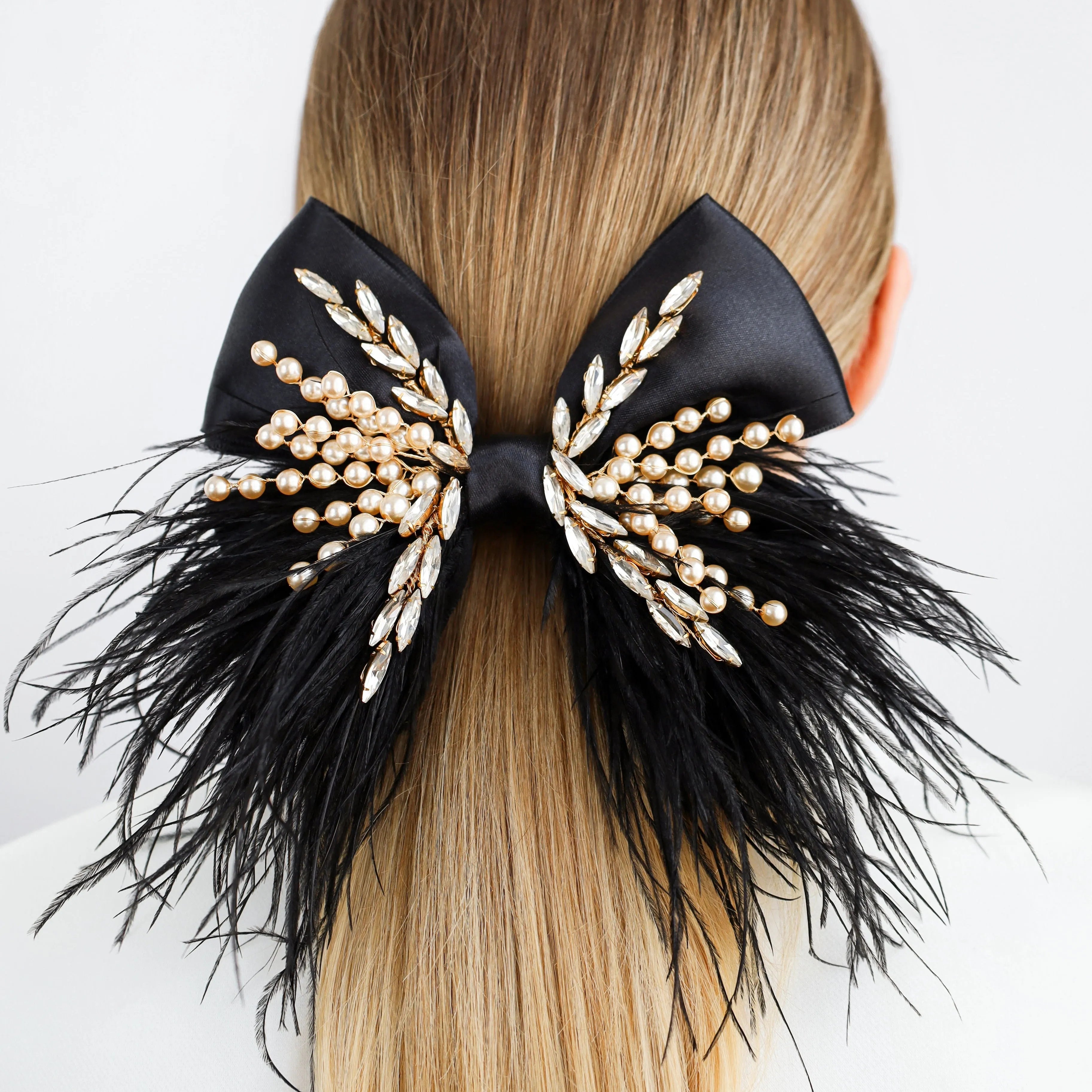 Чорний колір атласної стрічки надає банту з колекції Маргарет природного шарму та гармонії. Пір'я, яке тремтить від к...