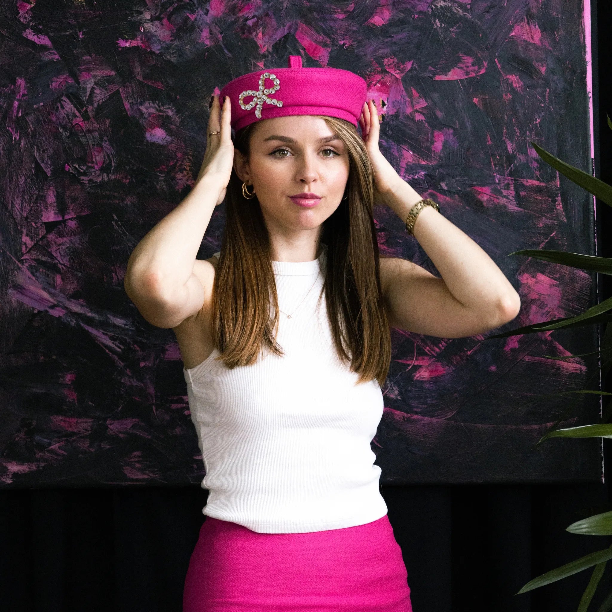 Берет класичної форми з пришитими стразами, виконаний з натуральної вовни. Позаду розташована стягуюча резинка, що дозволяє підлаштуватись під Ваш розмір голови. Підкладка зроблена з віскози.