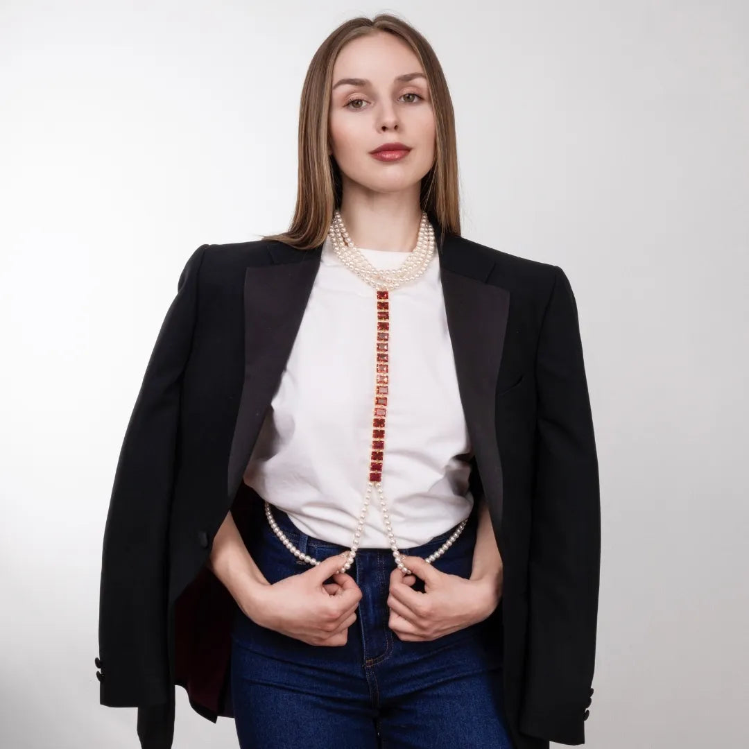 Справжня знахідка для любителів експериментів зі стилем! Цю портупею-трансформер ви можете носити у трьох варіантах: лише чокер, лише портупею, або ж, як багаторівневу прикрасу. Фіксація частин прикраси здійснюється завдяки застібці у формі нескінченності. Легкість трансформування аксесуара робить його універсальним у вашому гардеробі.