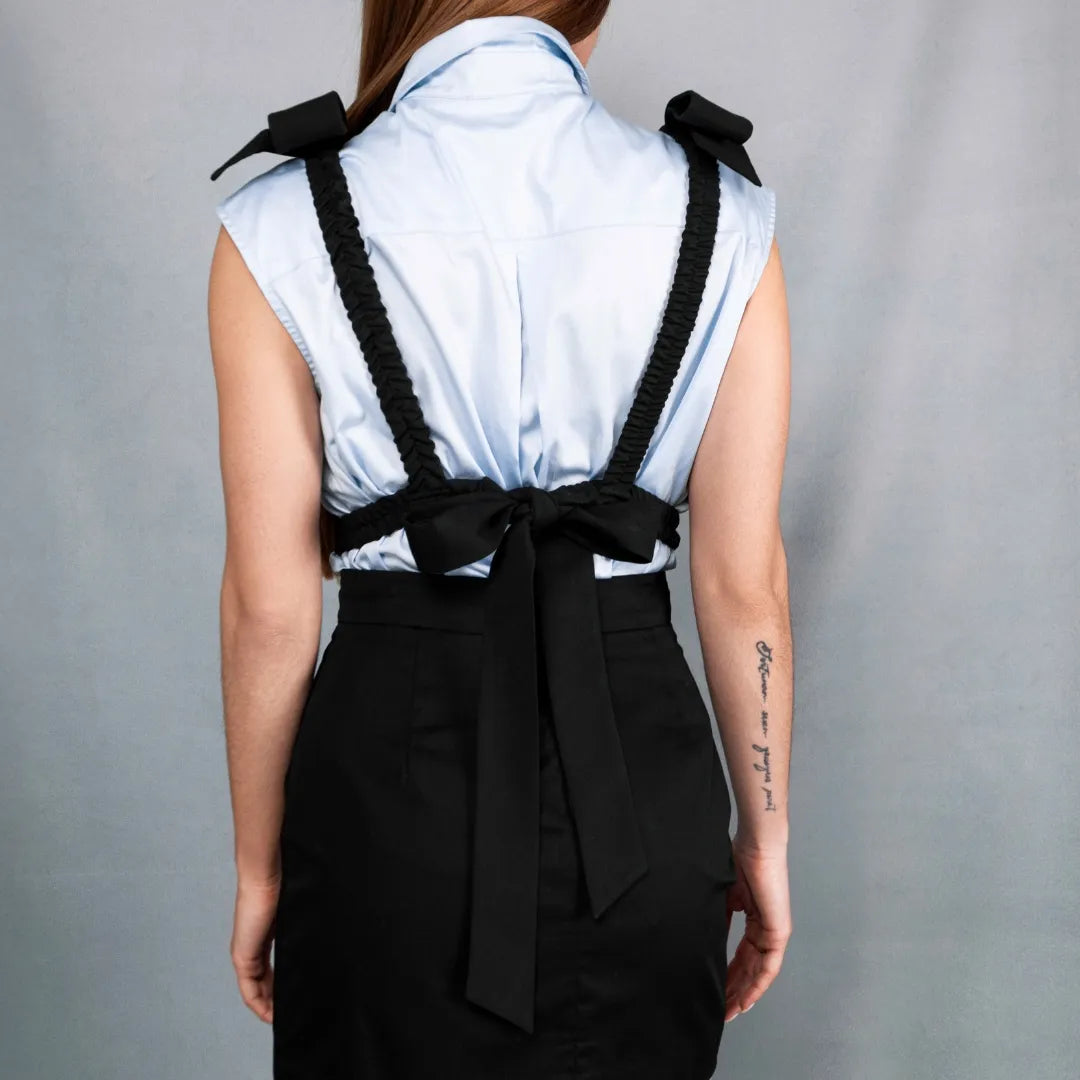 Наш бренд вкотре доводить, що бантів багато не буває! Портупея з бантів — це аксесуар, що виглядає не тільки драматично, але водночас і елегантно. Завдяки особливій конструкції прикраси, вона адаптується до будь-якої фігури. Носіть її поверх сорочок, суконь, чи навіть топів — будь-який образ одразу набуде цікавих мотивів.