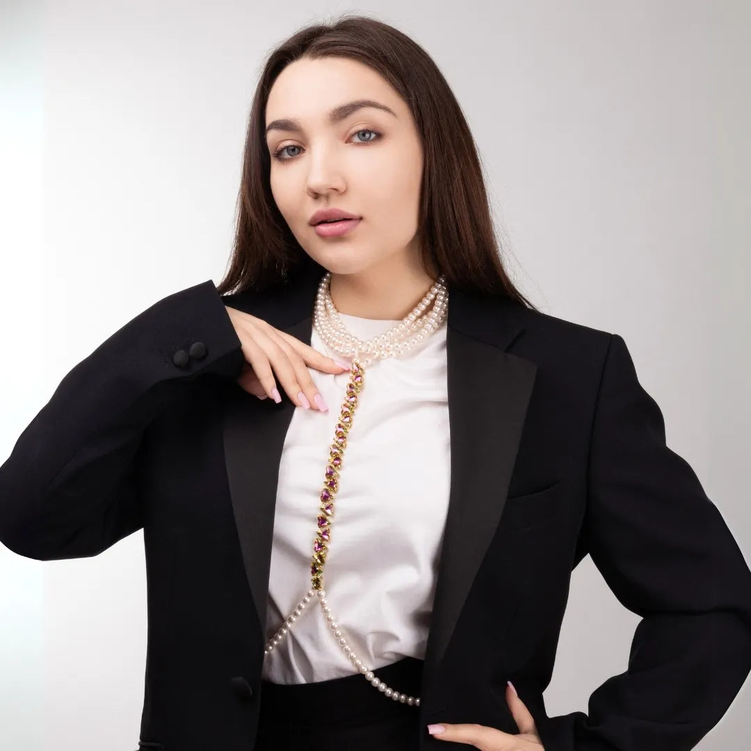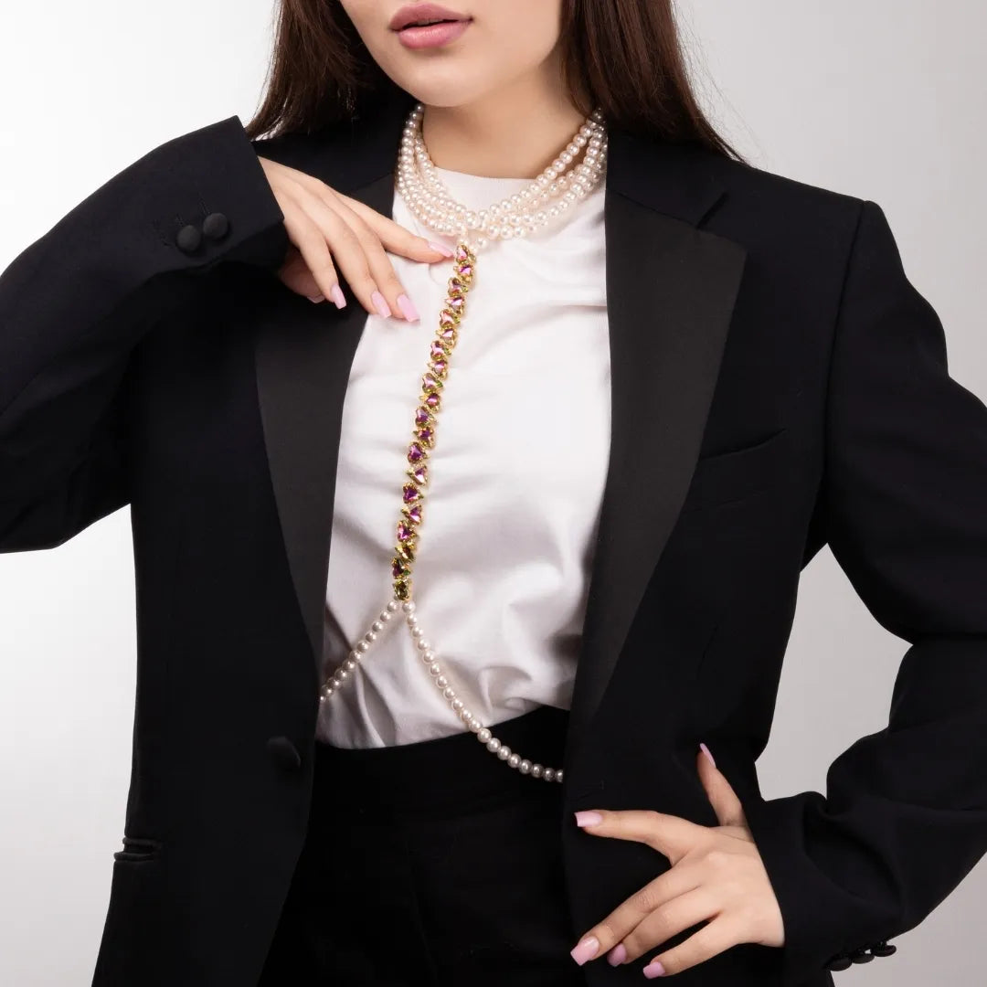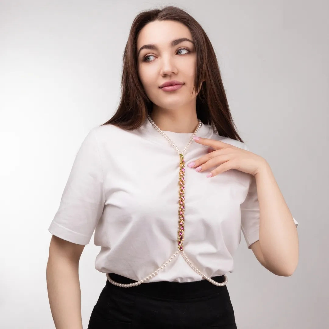 Справжня знахідка для любителів експериментів зі стилем! Цю портупею-трансформер ви можете носити у трьох варіантах: лише чокер, лише портупею, або ж, як багаторівневу прикрасу. Фіксація частин прикраси здійснюється завдяки застібці у формі нескінченності. Легкість трансформування аксесуара робить його універсальним у вашому гардеробі.