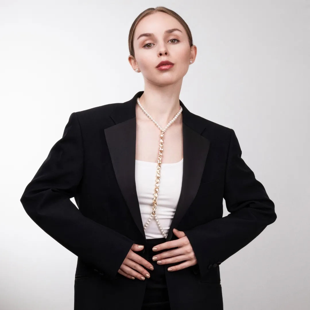 Справжня знахідка для любителів експериментів зі стилем! Цю портупею-трансформер ви можете носити у трьох варіантах: лише чокер, лише портупею, або ж, як багаторівневу прикрасу. Фіксація частин прикраси здійснюється завдяки застібці у формі нескінченності. Легкість трансформування аксесуара робить його універсальним у вашому гардеробі.