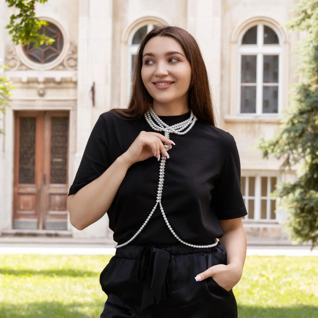 Справжня знахідка для любителів експериментів зі стилем! Цю портупею-трансформер ви можете носити у трьох варіантах: лише чокер, лише портупею, або ж, як багаторівневу прикрасу. Фіксація частин прикраси здійснюється завдяки застібці у формі нескінченності. Легкість трансформування аксесуара робить його універсальним у вашому гардеробі.