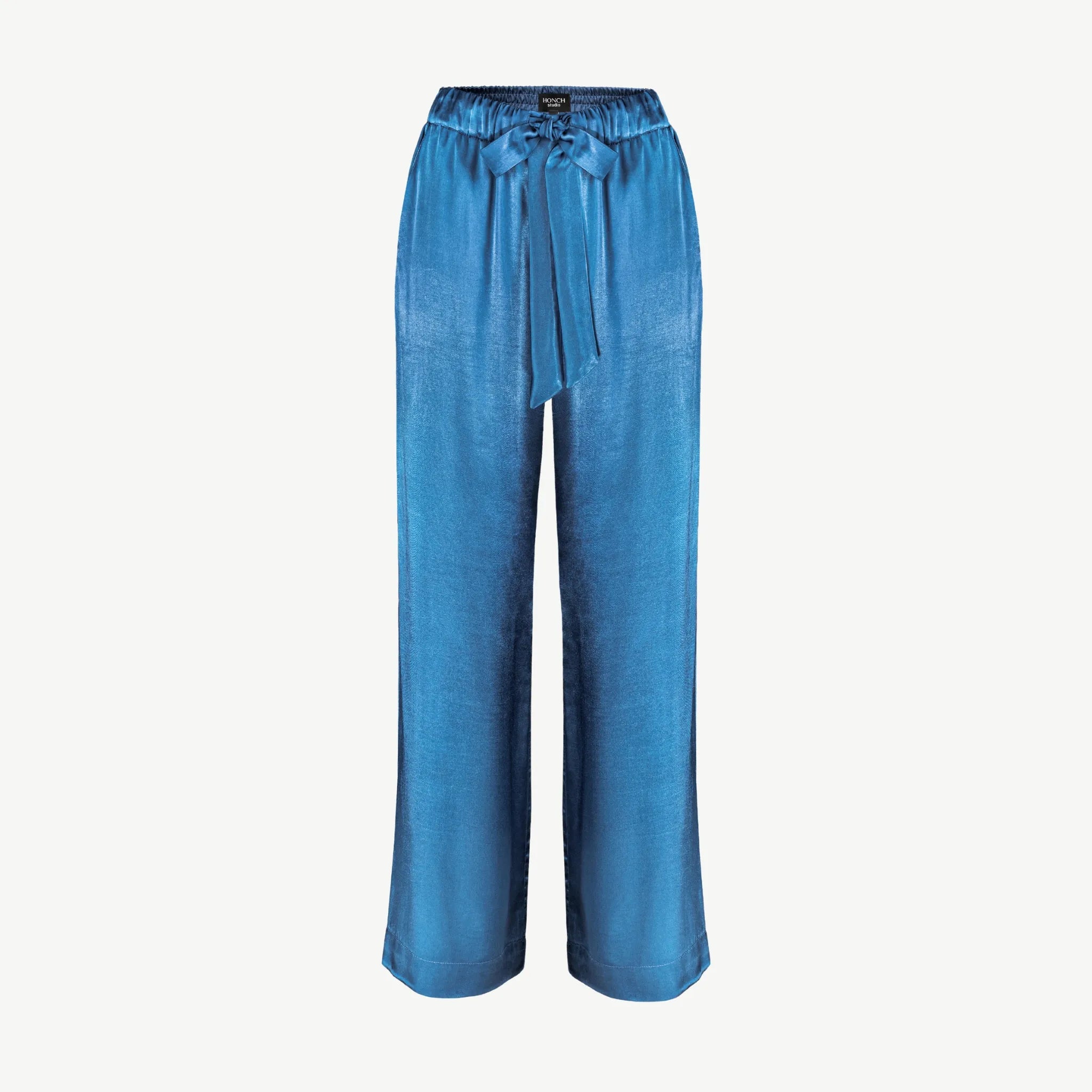 Віскозні штани піжамного стилю створені, щоб дарувати легкість вашому образу. Вони мають прямий силует, що не сковує рухи, а посадка регулюється завдяки протягнутому поясу, який можна зав'язати у бант. Особливості тканини штанів забезпечать відчуття комфорту навіть у літню спеку.